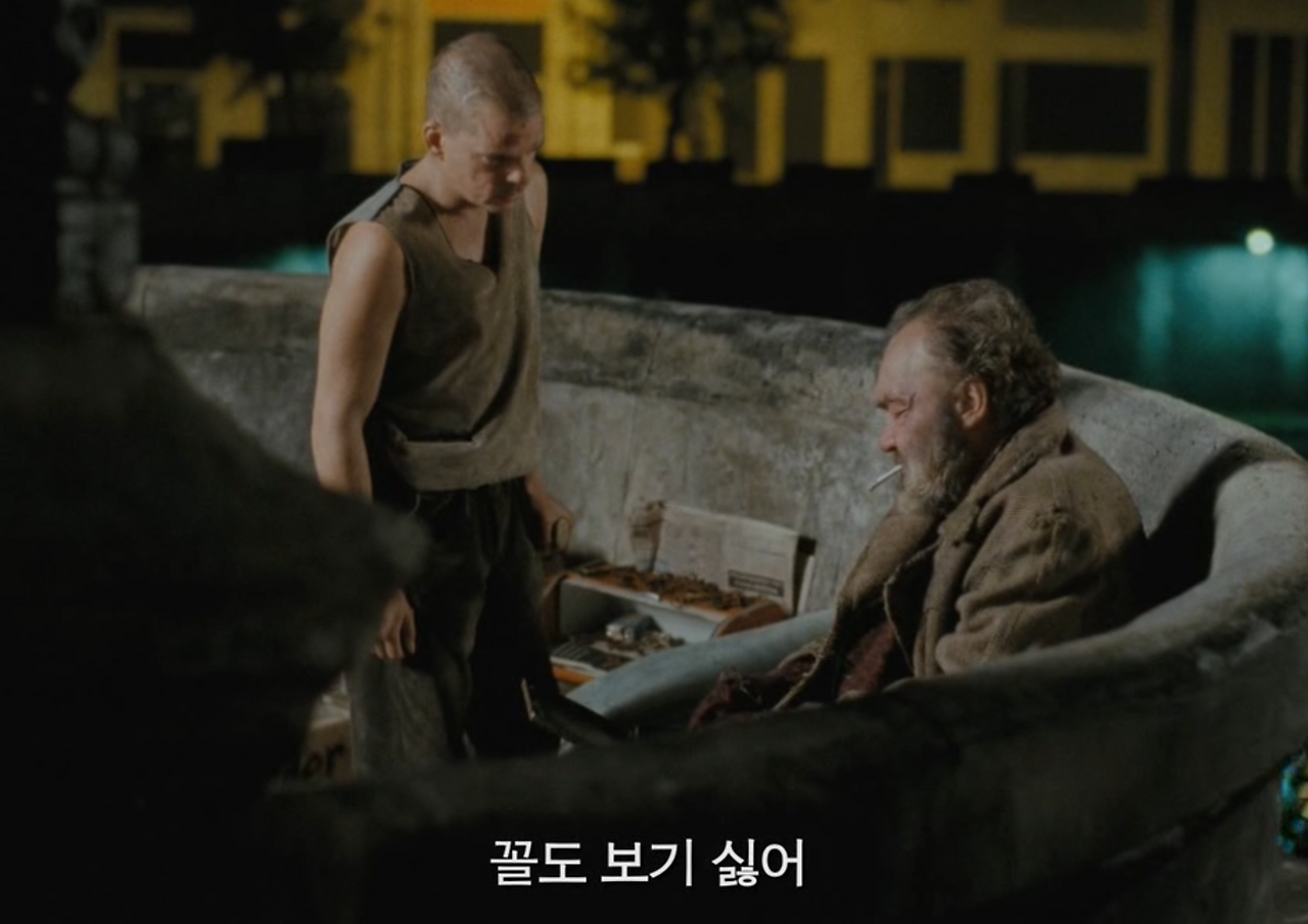 영화 첫 장면에서 알렉스는 아무런 표정 없이 어두움이 스산히 깔린 도로를 걸어갑니다. 누구에게도 관심을 보이지 않고 누구도 관심을 가지지 않는 한 사람의 걸인일 뿐인 그가 쓰러졌을 때, 우연히 미셀이 그를 발견하고 노숙인들의 보호소로 그를 옮기게 됩니다. 그곳에서 많은 상처 입은 사람들의 모습이 마치 다큐멘터리와 같은 담담한 시선으로 그려집니다.