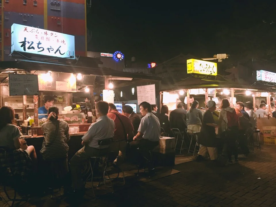 중간중간 포장마차에는 일본어를 전혀 할 줄 모르는 외국인들도 자리 잡고 있었다. 서툰 영어로 외국인들에게 말을 거는 일본 직장인들의 모습에서 한국의 평범한 직장인들의 모습을 볼 수 있었다. 머리 끝까지 취해 무슨 말인지도 모르면서 계속 말을 거는 사람들의 모습이 재밌게 보였다. 한국도 일본도 회사원들은 모두 비슷한 모습을 하며 삶을 살고 있는 것 같았다. 가끔 술에 취한 목소리로 노래를 부르는 사람들도 있었다.