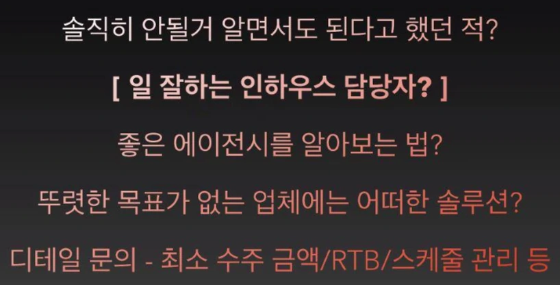 우선 통상적으로 인하우스가 하기 그런 일을 에이전시에 요청하는 경우가 많습니다. 전문화된 파트너가 되고 싶지만 fee구조 자체가 괴리가 큰 이유로 먹고 사는것도 굉장히 힘든면이 있지요