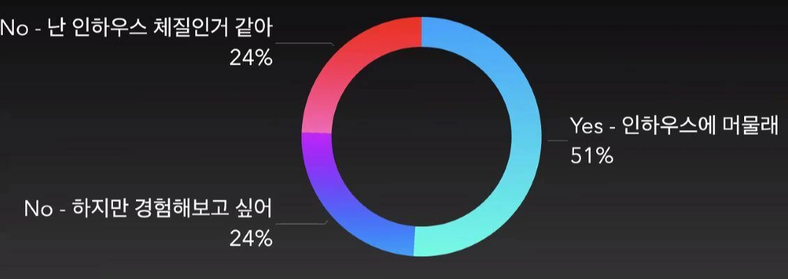 인하우스에 계신 분들은 대체적으로 인하우스에서 계속 머물고자 하는 경향이 있었습니다.