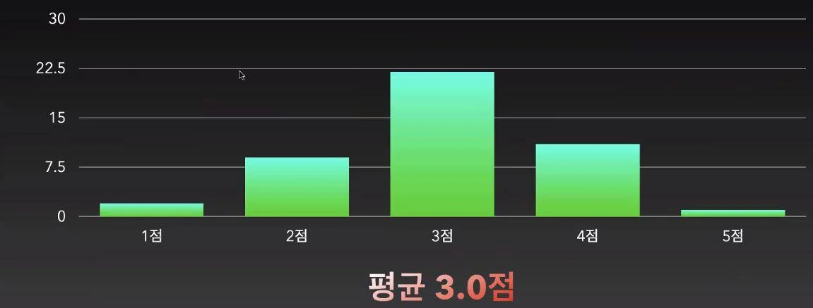 만족도는 평균 3점이었습니다. 완전히 만족하는 것도, 불만족하지도 않는 수치인데요. 3점은 약 40%의 인원이 차지하고 있었습니다. 언뜻 보기엔 3점이 좋아보일 순 있겠지만 어쩌면 어쩔수 없이 진행하는 무감각한 느낌으로도 해석이 될 수 있을듯 합니다.