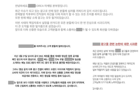 우리의 고객들은 자신의 의견을 적극적으로 표현합니다. 젠더 이슈와 관련되어서도 자신의 의견을 표현하고, 이를 넘어서 불매 운동을 벌이는 등 적극적으로 행동을 취하기도 하죠. 이에 따라서 브랜드는 논란이 된 콘텐츠를 내리거나, 공식적으로 사과문을 발표하기도 합니다.