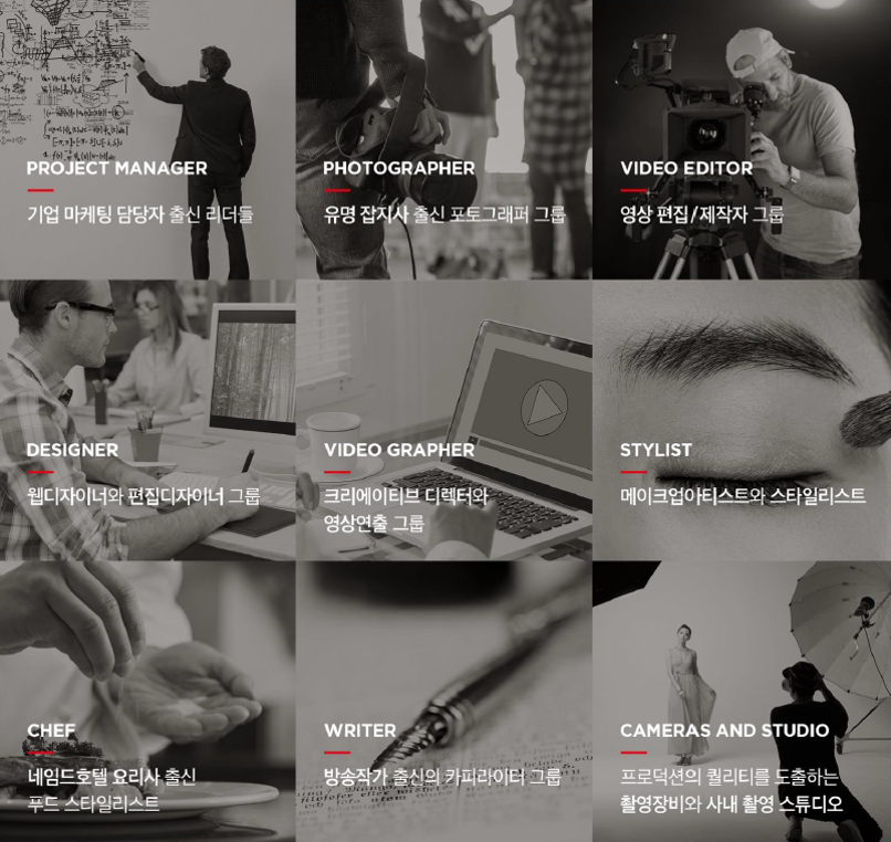때문에 이러한 변화는 포토 촬영을 늘렸을 때보다 콘텐츠 활용 및 표현 범위를 극대화 시켜준다는 장점이 있습니다. 각 산업 전문가 구성을 통해 개별 브랜드 톤을 특화시키고 콘텐츠 카피를 정비하며 상황에 맞는 리소스 투입으로 퀄리티가 상향되는 부분이 있겠지요. 지니고 있는 리소스를 잘 활용 한다면 저렴한 비용으로 보다 다양한 영역의 크리에이티브 제작도 가능해집니다.