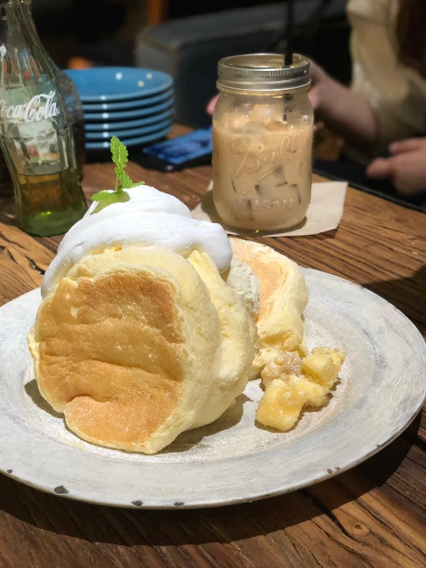그리고 커피 한 잔과, 수플레 팬 케이크로 디저트를!