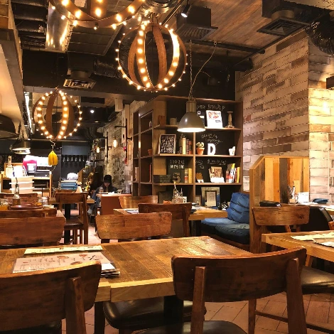 큰 길거리 가의 건물 2층, 눈에 띄지 않는 카페 "Mame Hico"에서 그 날을 마무리 합니다.