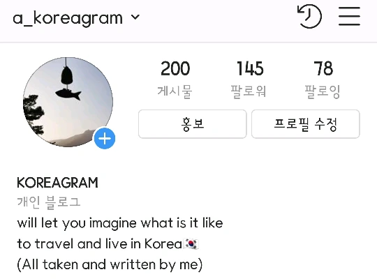 그렇다면 그 미약함의 가치는 얼마나 될까요? 제 계정의 통계를 분석해보면 지난 7일간 노출이 864명에게 된 것으로 나오고, 하트를 받은 수는 230개입니다. 확실히 날이 갈수록 플랫폼에 컨텐츠의 숫자가 급증하면서 광고비를 집행하지 않는 컨텐츠들의 자연 노출이 급감하는 것을 느낄 수 있는데, 그래도 괜찮습니다. 일주일에 8백여 명, 이렇게 4주를 하면 한 달 동안 3천여 명, 일 년이면 4만여 명에게 우리나라의 아름다운 구석구석 단면을 소개해 줄 수 있으니까요. 저와 같은 사람이 10명이 있으면 40만, 100명이면 400만 명이 금방 되겠죠. 우리나라의 전통 건축물, 현대 네온사인, 아름다운 자연경관, 그 어떤 것이라도 그 소재 자체에 관심 있던 사람이 우연히도 사진을 보고 '한국이라는 나라가 있구나' 또는 '한국이 이런 면모도 있는 나라였구나'라는 생각을 하게 된다면 저는 성공이라고 생각합니다. 이런 작은 경험들이 무의식 중에 쌓이고 쌓여서 한국이라는 이미지를 형성할 것이고, 언젠가 한국에 대해 떠올리게 된다면 이왕이면 좋은 이미지들이었으면 좋겠습니다. 그래서 저는 아예 인스타그램의 계정명을 개인 이름에서 아예 코리아그램(KOREAGRAM)이라고 개명을 하였고, 대놓고 한국의 명소를 소개하는 식으로 포스팅을 정비하고 있습니다.