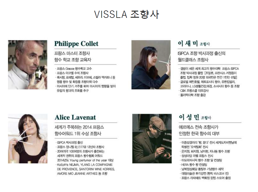향을 만드는 사람을 '조향사'라고 한다. 조향사를 양성하는 학교 중 따지자면 하버드대학교 같은 곳이 있다. 프랑스의 '이집카(ISIPCA)'다. 이집카 출신의 조향사들은 향을 만드는 연금술사 같은 사람들이다. 김경수 대표님은 이런 사람들과 함께 향을 만든다. 특정한 이미지를 분석하여 프랑스에 보내면 프랑스에 있는 조향사가 일종의 '향 레시피'를 만들어 보내면 한국 조향사가 한국인 선호도에 맞게 향을 리터칭하여 한국화하여 향을 제작하는 식이다.