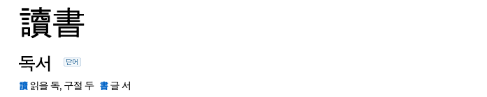 네이버 한자사전을 찾아보면, 읽을 "독", 글 "서"로 이루어진 단어로, 글을 읽다로 풀이할 수 있다.