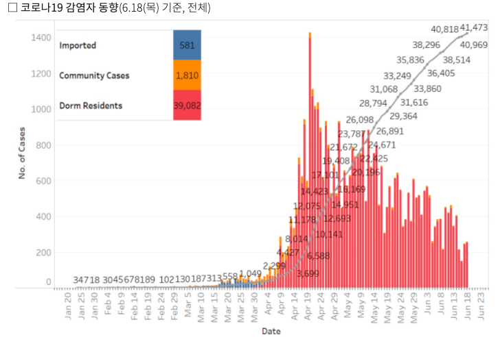 싱가포르는 확진자가 41,473명으로 (6/18일기준) 한국보다 많다. 싱가포르 전염병 발발 대응 태세 단계는 ORANGE로 3단계이다. Disease Outbreak Response System Condition (DORSCON) 는 총 4단계(Green, Yellow, Orange, Red)로 단계별 조치사항은 보건부 홈페이지에서 확인할 수 있다.