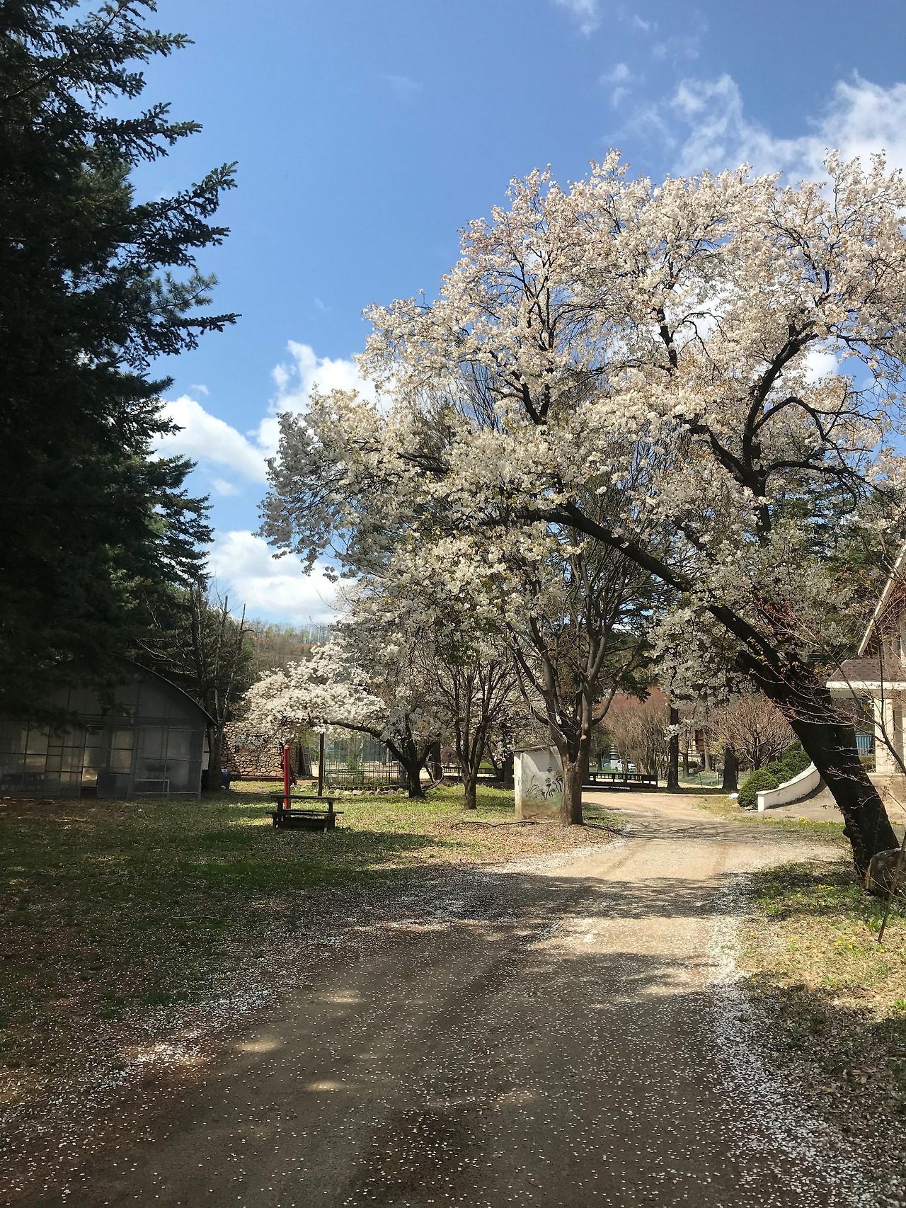 크고 높게 피어난 꽃나무길을 걷고 있자니