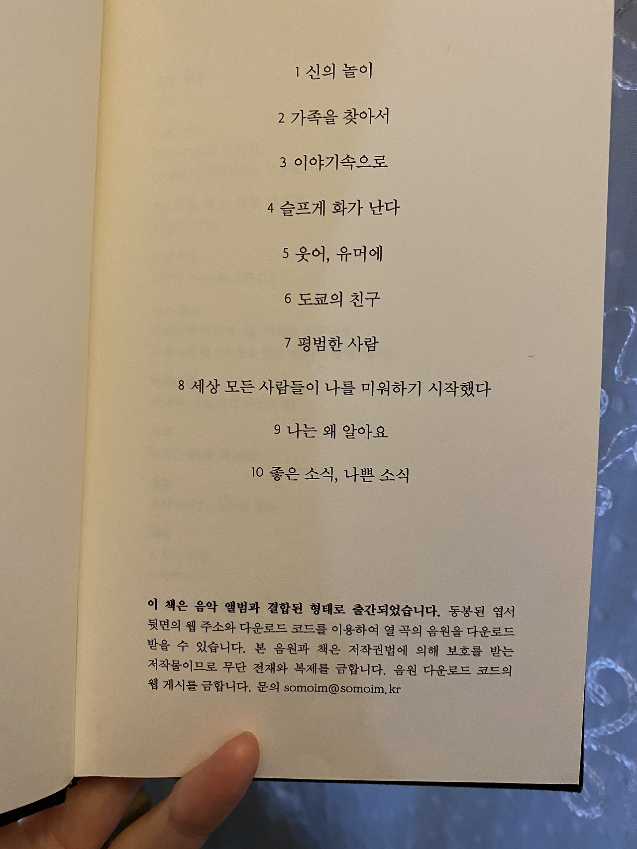 대신, 가사집과 함께 본인의 에세이가 실린 <신의 놀이>라는 책을 구입하면,