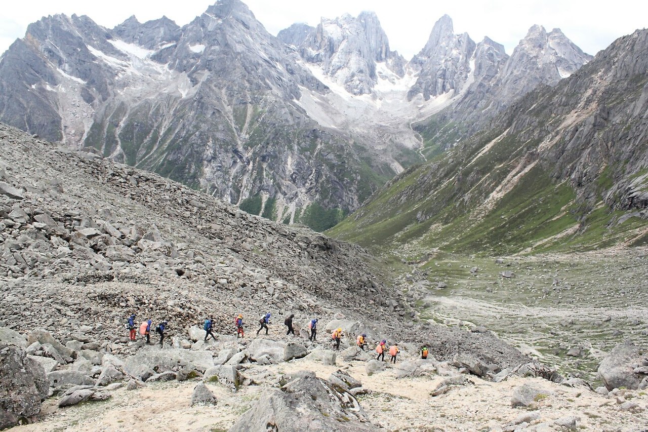 살면서 누구에게나 한 번쯤 예상치 못한 행운이 찾아오곤 한다. 그 행운이 나에게는 바로 오지 탐사대였다. 높은 경쟁률을 뚫고 그야말로 운명처럼, 행운이 찾아왔다. 최종 합격을 하고 국내 산행 훈련을 하면서 무릎 염증으로 아파 고생했지만 포기하지 않고 쉬지 않았기에, 무릎 주변 근육이 조금씩 형성됐고 그에 따라 통증이 사라져 갔다. 4달간의 국내 훈련을 마치고 중국 쓰촨성으로 해외 등반 출정을 위한 발단식까지 치렀다. 출국 당일. 인천 국제공항에 도착하고 사람 수보다 훨씬 더 많은 화물 가방들을 수화물로 부친 후, 파란색 비행기 발착 정보 스크린을 배경 삼아 다들 한 손에 주먹을 쥐고 '파이팅'이라고 외치며 사진을 찍었다.