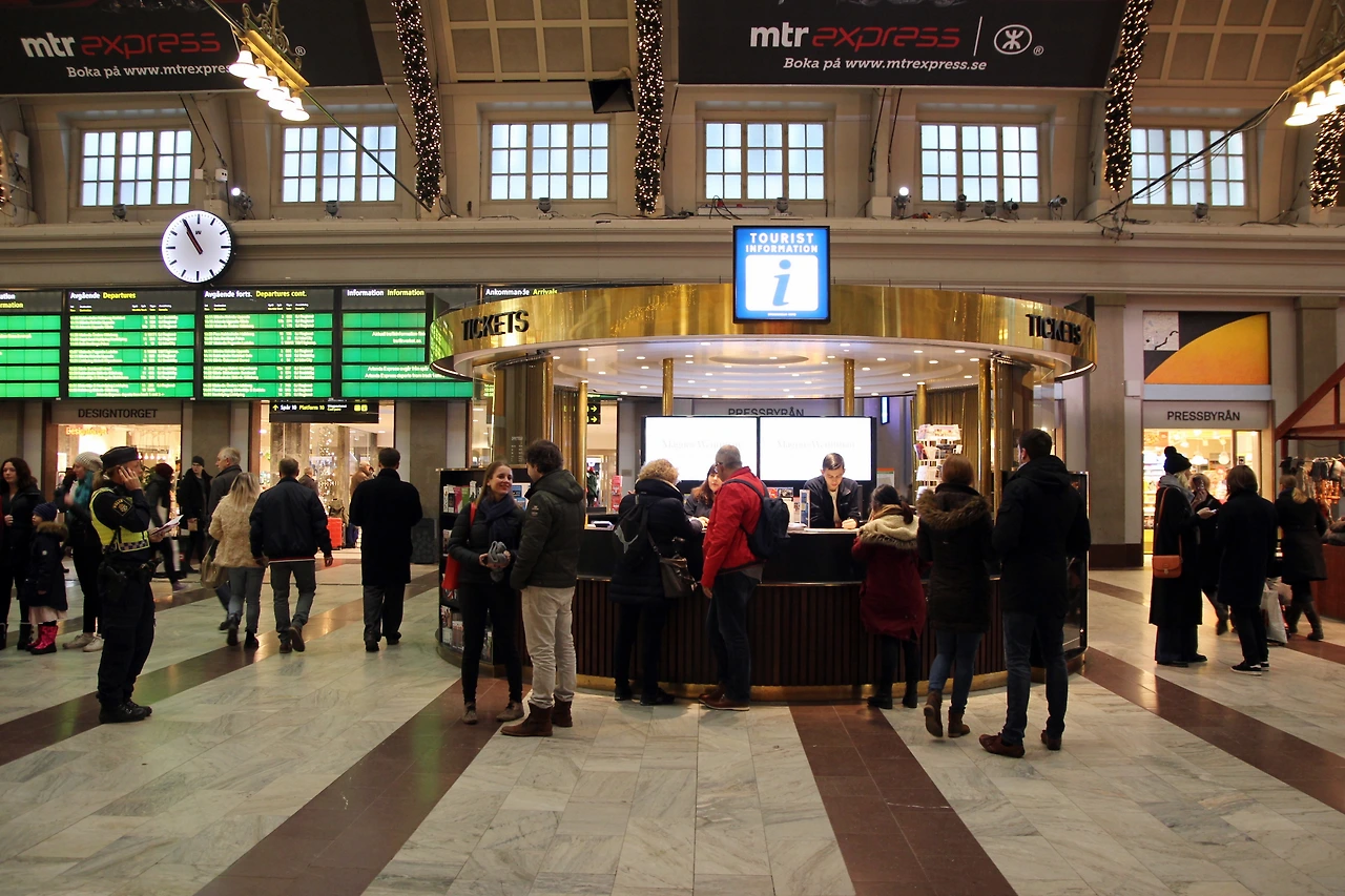 중앙역에 들어서자 1층 내부는 코인 락커와 미용실, 카페, 레스토랑, 편의점, 휴대폰 유심 판매하는 통신사들로 어지러웠다. 정신이 혼미해져서 기차역 직원에게 투어리스트 인포메이션 센터가 어디냐고 물으니 쭉 가다가 왼쪽에 보이는 회전문을 통과해서 에스컬레이터를 타고 내려가서 직진을 하면 찾을 수 있을 거라고 설명해주었다. 내려가 보니 열차를 타고 내릴 수 있는 곳이 지하 1층 스톡홀름 중앙역이고, 버스가 도착하고 출발하는 곳이 지상 1층의 스톡홀름 중앙역으로 분리되어 있는 것 같았다. 스톡홀름 카드를 구매할 수 있는 투어리스트 인포메이션 센터는 지하 1층 중앙의 둥근 부스에 위치하고 있었는데, 스톡홀름 맵부터 액티비티 안내, 관광 엽서 판매 등 다양한 업무를 하고 있었다. 그러나 내 시선을 먼저 사로잡은 것은 기차역 안의 크리스마스 마켓과 트리 장식들이었다. 날씨가 많이 춥지 않아도 장식 덕분인지 크리스마스가 곧 며칠 뒤라는 게 생생하게 느껴졌다.
