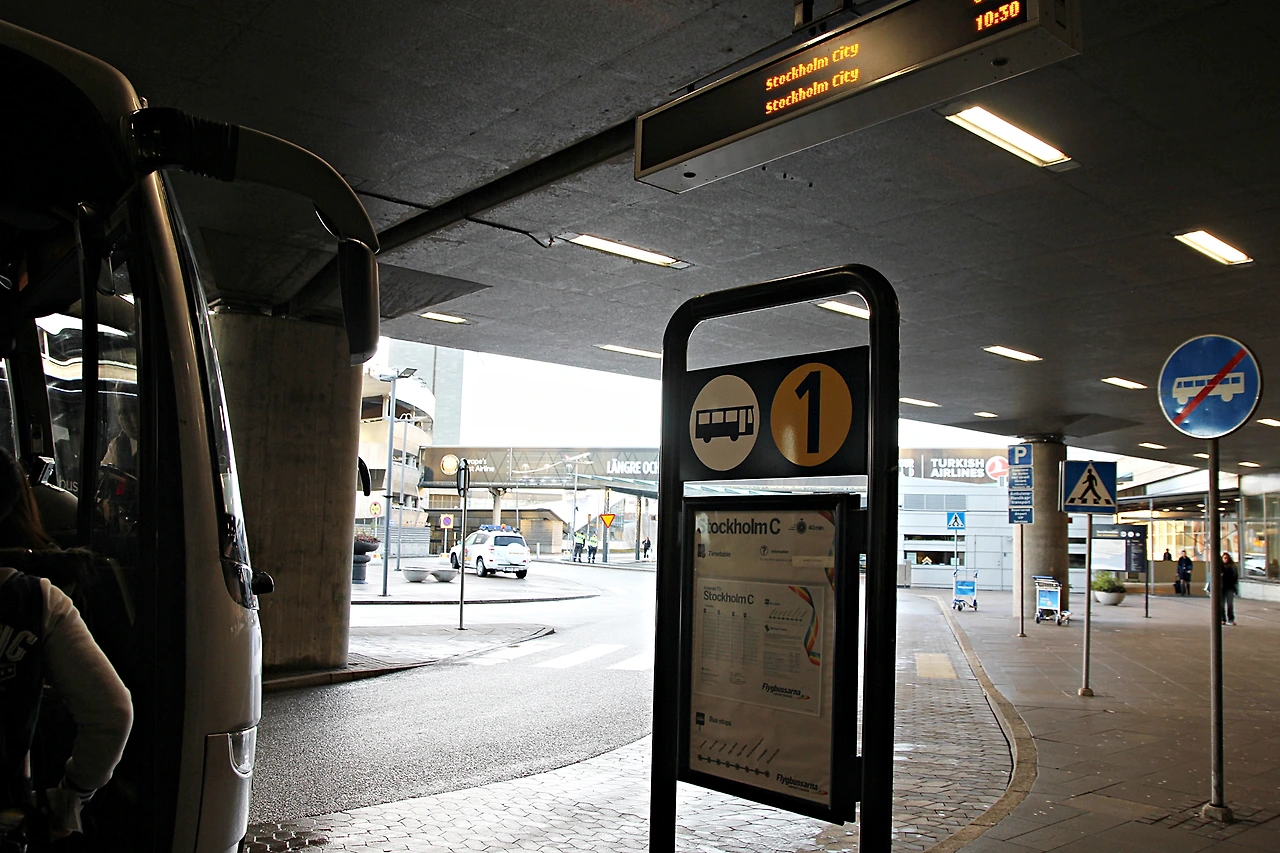 이제 몸이 가벼워졌으니 시내로 갈 차례였다. 시내로 가는 방법은 총 3가지가 있는데, 알란다 익스프레스는 20분밖에 안 걸리는 대신에 가격이 편도에 270 크로나 정도로 비쌌다. 2명부터 저렴하게 구매가 가능한 프로모션이 있었지만 나는 혼자라서 그 혜택을 받을 방법이 없었다. 그래서 Flygbussarna를 이용해서 시내로 나가기로 했다. 기존에 찾아놓았던 버스 회사였는데 공항 바로 앞에서 탈 수 있고 10분 간격으로 버스가 출발하는데다가 시내까지 45분 정도밖에 안 걸렸다. 그런데 앱이나 인터넷으로 예매하면 20 크로나 가 할인된 99 크로나 ( 한화 14000원가량)에 편도를 구매할 수 있었다. 그래서 앱을 미리 스마트폰에 설치를 해서 배차 시간까지 확인했었는데 짐을 맡기고 1층으로 올라오니, 앱을 켜서 결제를 하는 게 어쩐지 귀찮았다.