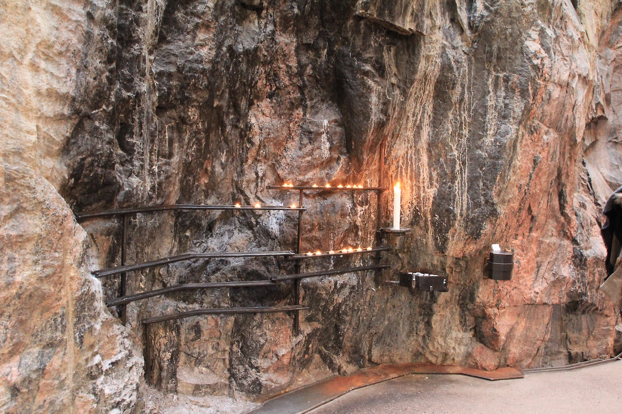자연 암석을 이용해 그 곳에 촛대를 설치했다.