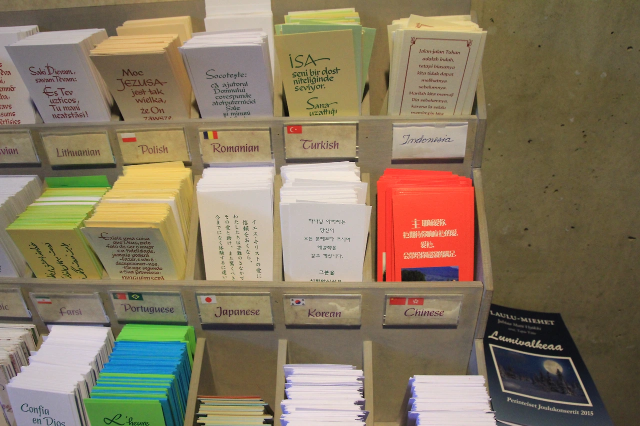 예배당 들어가는 입구에는 좋은 글귀가 각 나라 말로 프린트되어 있다. 한국어도 준비되어 있다.