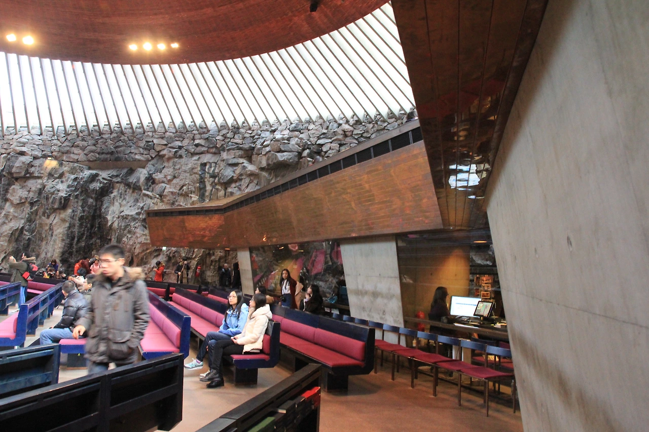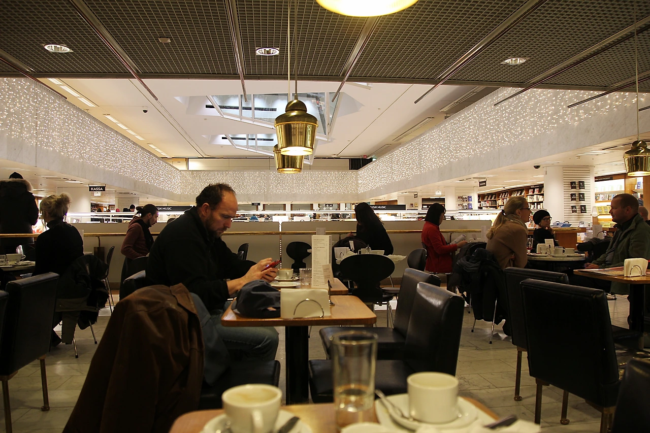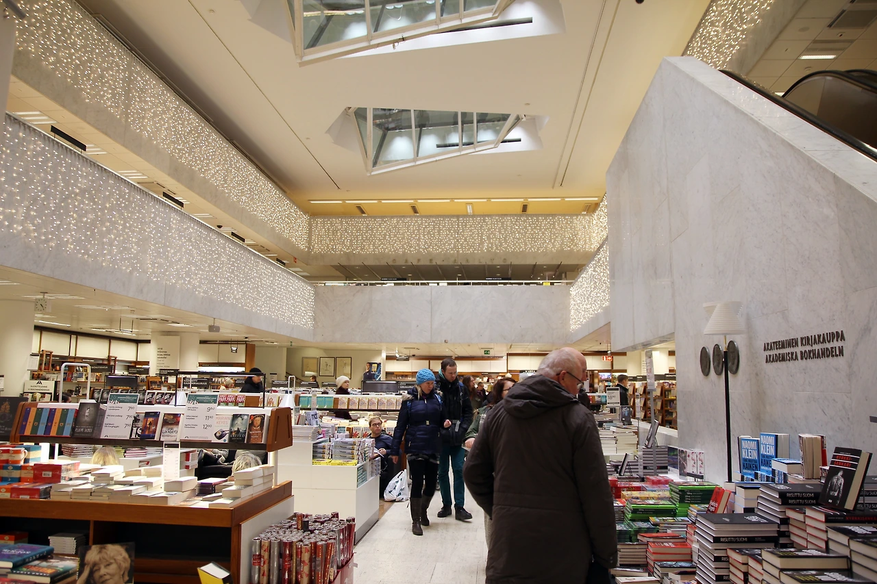 워낙 많은 곳을 단기간에 다니다 보니 건축물에 대한 감흥이 매우 낮아진 상태였다. 그래서일까 헬싱키의 아름다운 서점 아카데미아는 내게는 그저 공간 전체를 둘러싼 아이보리색 대리석과 따뜻하게 배치된 서가가 인상적인 곳으로 보였다. 우선 내가 제일 좋아하는 책들이 모조리 핀란드어나 영어로 되어있다 보니 감흥이 더 떨어졌달까. 엄청난 기대를 하고 가기에는 소담하고 아름다운 곳이다. 일단 서점의 규모로 치자면 우리에겐 교보문고가 있다. 광화문 교보문고나 강남 교보문고 정도의 규모를 생각하고 간다면 조금 실망스러울지도 모른다.