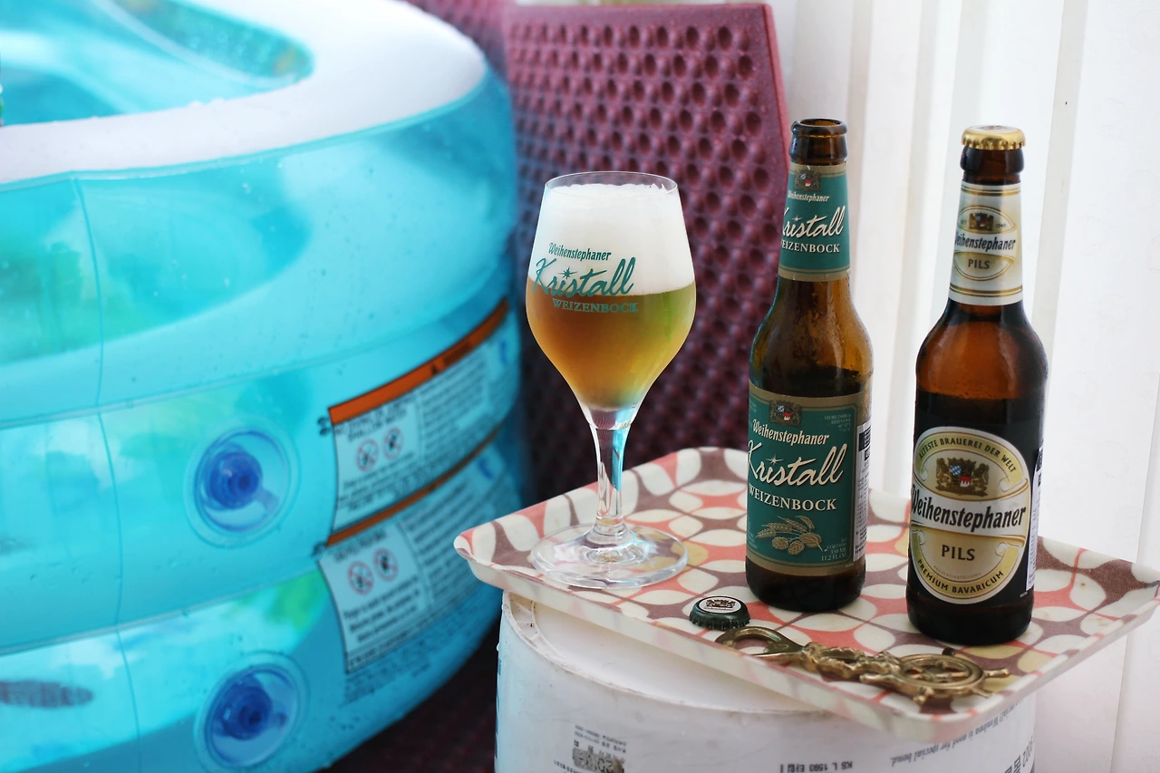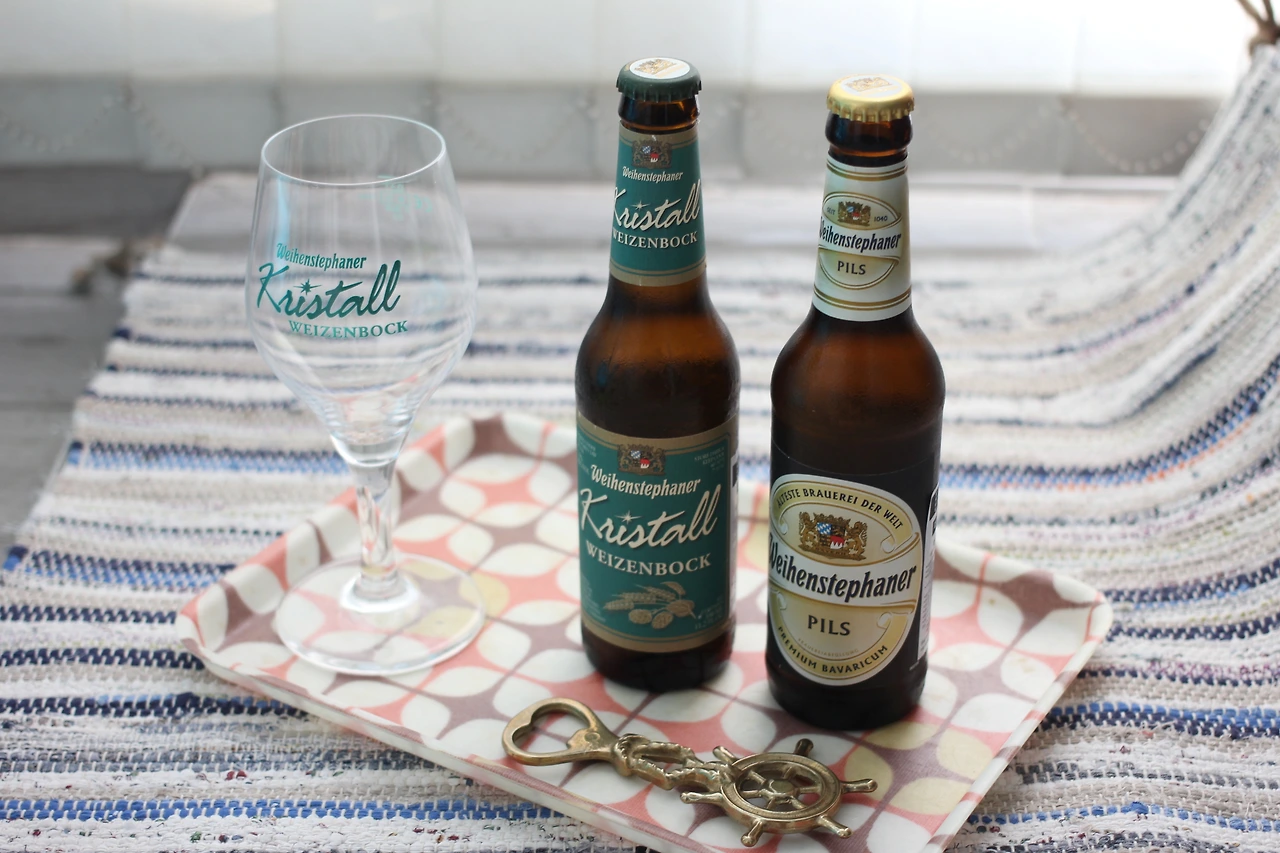 열심히 거실로 달려가 냉장고에서 시원하게 보관되어 있던 바이젠슈테판 크리스탈 바이젠복과 필스너를 꺼냈다. 미리 잘 씻어서 말려둔 크리스탈 바이젠복 전용잔도 함께!