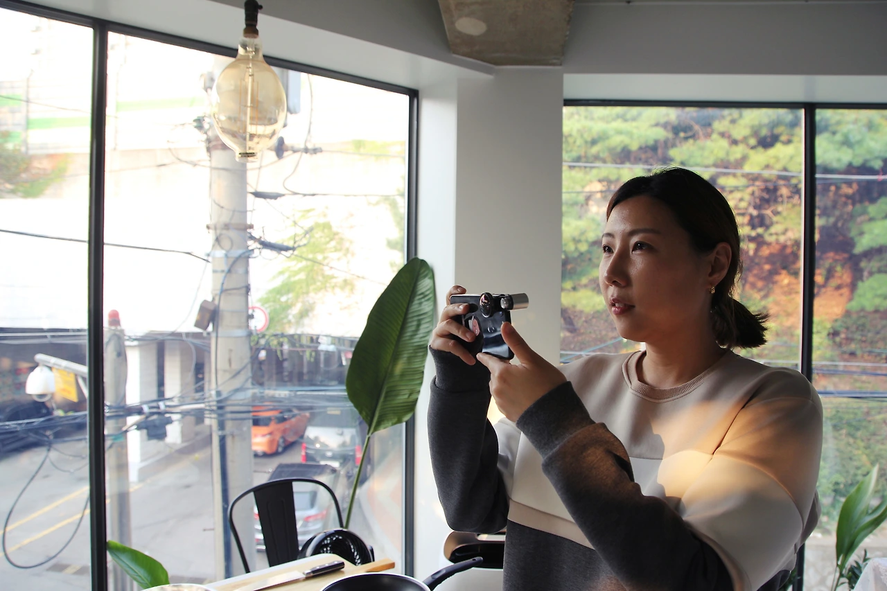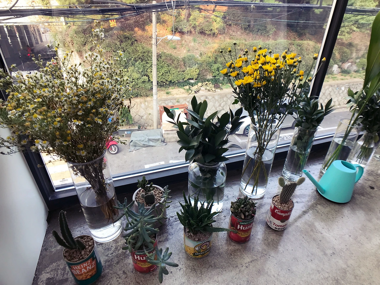아이러브한식 스튜디오가 위치한 곳은 연남동과 연희동을 연결하는 굴다리 부근의 건물로, 직각으로 연결된 두 면이 전면 유리창이라 밖에서 보면 수정구슬 안의 아기자기한 장난감처럼 보이기도 했다. 실제로 지나가던 사람들이 카페냐고 문의하거나, 3층에 위치한 요가 스튜디오에 요가를 배우러 온 사람들도 살짝 들려 무얼 하는 곳이냐 묻는다 하니 여타 쿠킹 클래스 스튜디오와는 다른 카페 같은 요요한 멋이 있는 곳이다. 내가 방문한 토요일 오후에는 햇빛이 스튜디오에 따스하게 들어오고 있었다. 남자 친구도 쿠킹클래스라고 해서 기존의 요리학원 같은 곳을 상상했다가 예쁜 카페 같은 공간에 방문해서인지 긴장이 조금 풀린 것처럼 보였다.