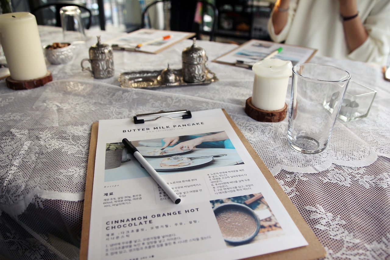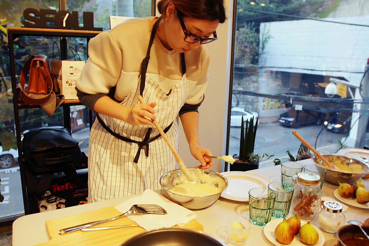 토요일 오후 5시에 시작된 쿠킹 클래스에는 우리 커플과 다른 커플, 총 4명으로 프라이빗하게 진행되었다. 우리가 오늘 만들어볼 메뉴는 버터밀크 팬케이크와 시나몬 오렌지 핫 초콜릿이었다. 그 전날인 금요일에는 10명의 수강생들이 몰려서 팬케이크를 굽고 반죽을 만드느라 정신이 없었지만 오늘은 두 커플로 진행되어 상대적으로 여유가 있다고 하시는 걸 보니, 날짜에 따라 인원수는 변동이 있을 수 있다.