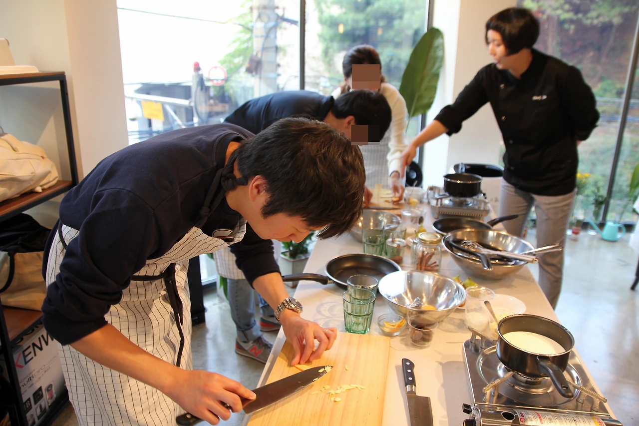 제이디 셰프님의 원데이 쿠킹 클래스는 비교적 쉬운 난이도의 메뉴들을 선보인다. 쿠킹 클래스를 처음 듣는 수강생들도 부담 없이 따라 할 수 있는 메뉴와 강의 방법을 통해 요알못인 남자 친구도 나의 도움 없이 핫 초콜릿을 만드는 것에 성공했다. 시연이 먼저 이루어지고, 각자 그룹으로 나뉘어 만들다 보면 제이디 셰프님이 다가와 도움을 주시기도 하고 조언을 해주신다. 특별한 데이트로 연남동 원데이 쿠킹클래스를 가볍게 추천할 수 있는 이유도 여기에 있다. 서로의 솜씨에 감탄하며 알콩달콩하게 요리를 하다가, 어려운 문제가 생겼을 때는 셰프님이 주시는 약간의 어드바이스를 통해 함께 난제를 극복해나가는 그 과정에서 서로의 스킬 업을 눈으로 확인하는 동시에 서로가 가진 장점을 다시 확인하면서 더 애정이 업그레이드된다.