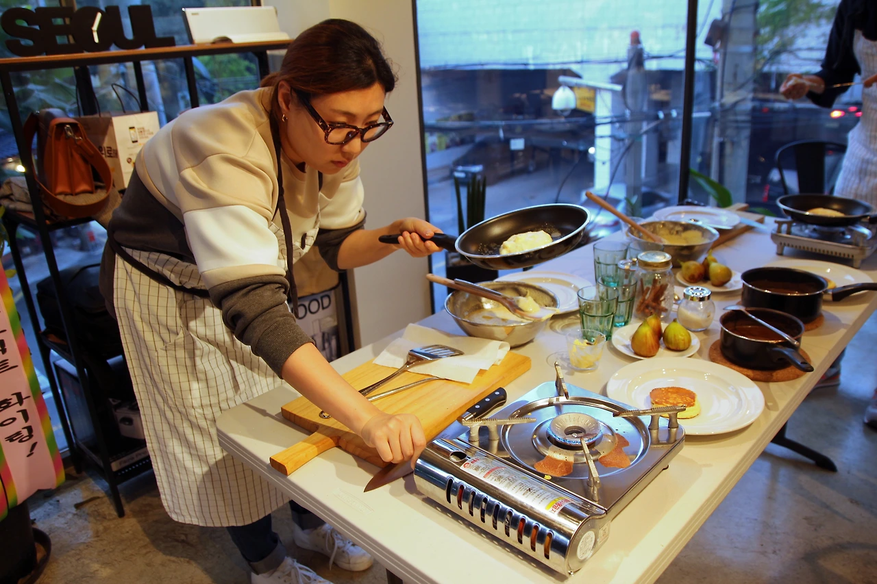 그래서 '아이러브한식' 의 이야기를 들었을 때, 그 스토리텔링과 니즈에 깊이 공감하고 응원하는 마음이 들었다. 한식에 대해 잘 아는 사람을 추천해달라는 해외 다큐멘터리 촬영 요청에 마땅한 후보를 추천해주지 못해 수박 겉핡기식으로 한식을 소개할 수밖에 없었던 이야기를 들을 때면 (물론 훌륭하신 후보분들이 많지만 그분들은 각자의 영역에서 바쁘시고, 영어로 설명하시면서 촬영지를 챙겨가며 따라다니시기엔 힘드시니까) 외국인들에게 한식을 소개하며, 한식을 외국인들에게 제대로 소개할 수 있는 인재를 양성하겠다는 그 꿈을 응원하고 싶었다. 그렇게 외국인들이 트렌디한 한식을 배울 수 있는 공간이 생긴다는 이야기를 전해 들은 것이 초여름쯤이었다. 그 이후에 아이러브한식 스튜디오가 연남동에 문을 열었고, 9월부터 아이러브한식 연남동 스튜디오에서 평일 오전에는 외국인을 위한 제이디 셰프님의 한식 쿠킹클래스가 영어 지원이 가능한 스태프와 함께 진행되고, 금요일 저녁과 토요일 오후에는 제이디 셰프님의 세계 요리 쿠킹 클래스가 한국인들을 대상으로 진행되고 있다. (원데이 쿠킹클래스 예약은 네이버 예약(링크)에서 진행이 가능하고, 외국인 여행자들을 위한 한식 쿠킹 클래스 예약은 에어비앤비 트립(링크)과 Viz eat(링크)에서 가능하다.)