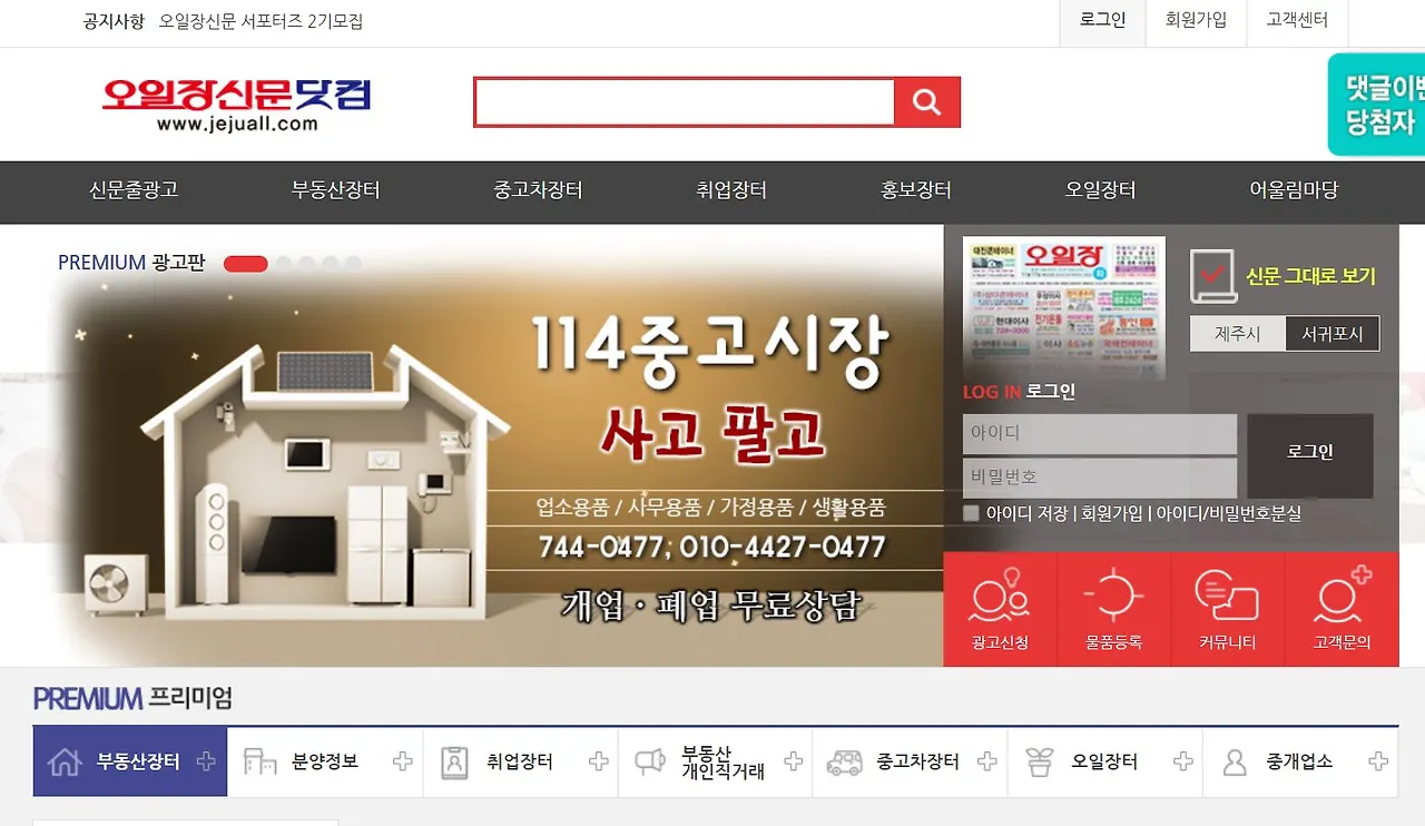 2. 제주오일장 닷컴에 원하는 조건을 가진 매물을 검색하여 부동산에 해당 매물에 대해 문의한다.