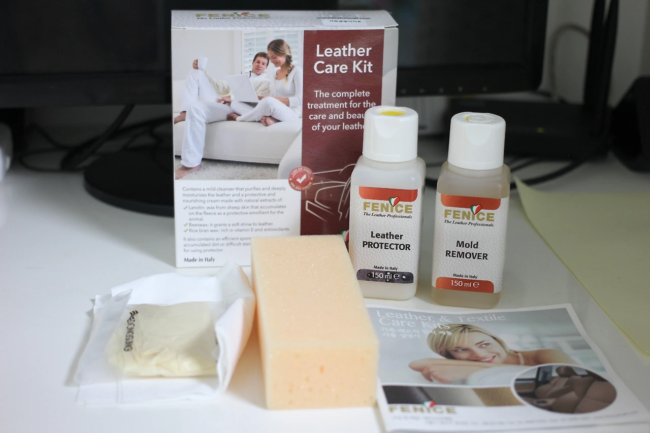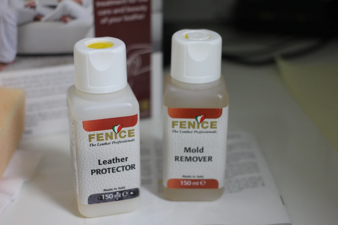 가죽 곰팡이 제거제와 가죽 보호제를 득템했다.