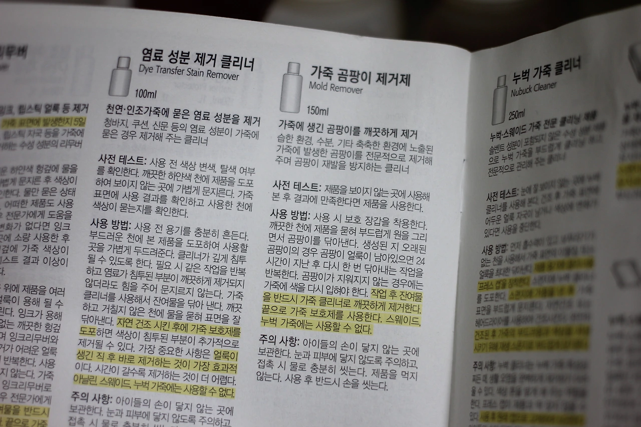 인생 처음으로 가죽 곰팡이 제거약을 구매했다