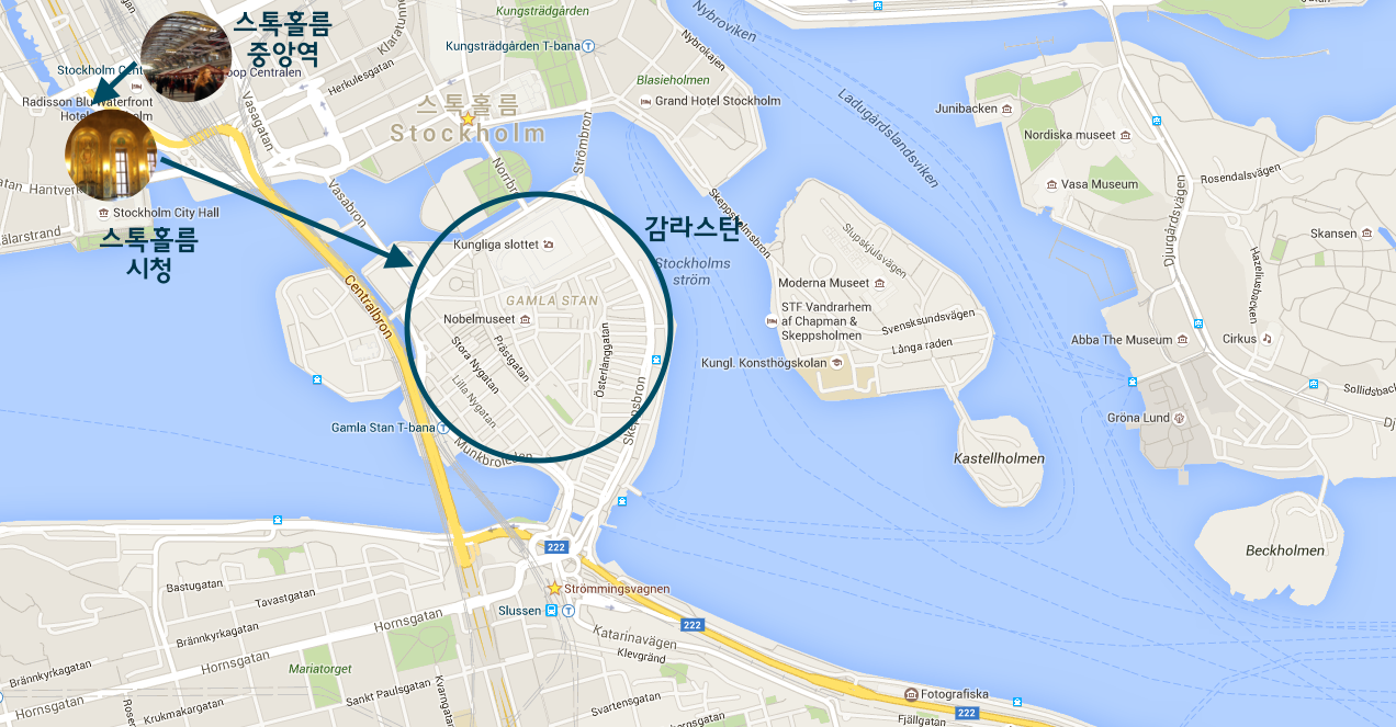 스톡홀름에 다녀온 경험이 있는 사람들은 한결같이 감라스탄을 추천했다. 여행을 떠나기 전 으레 그렇듯(이제는 익숙하시겠지만) 주변 사람의 이야기도 듣고 인터넷 검색도 많이 참고하는 편이다. 여행을 떠나기 전까지 출퇴근 길에 하는 일은 오로지 검색창에 도시 이름이며, 관광지를 쳐보고 공식 홈페이지에 들어가 보거나, 후기를 보는 것이었다. 인터넷 검색을 하다가 11월 19일에서 12월 23일까지 감라스탄에 있는 노벨 뮤지엄 앞에서 크리스마스 마켓이 열린다는 정보도 알게 되었다. 그 전까지는 갈까 말까 망설이던 스웨덴 왕궁도 스톡홀름 카드를 이왕 구매했으니 가보기로 했다. 스웨덴 왕궁의 오픈 시간이 4시까지라서 스톡홀름 시청을 본 뒤에 3번 버스를 타고 감라스탄으로 이동했다.