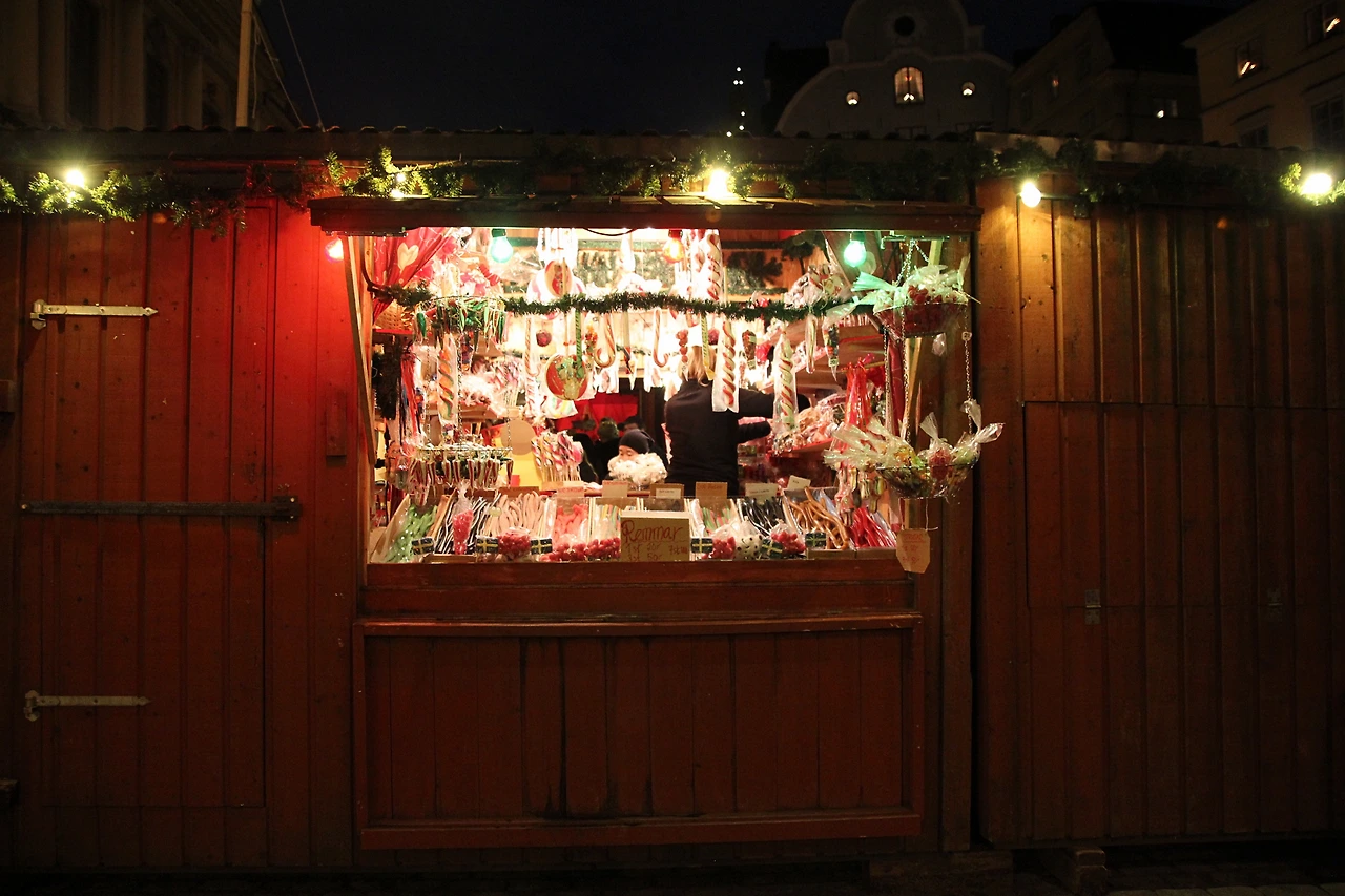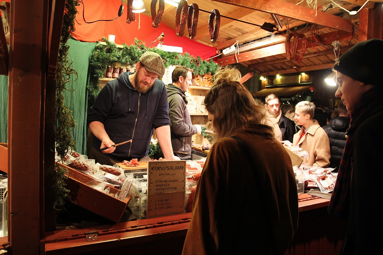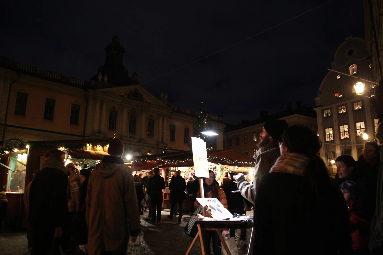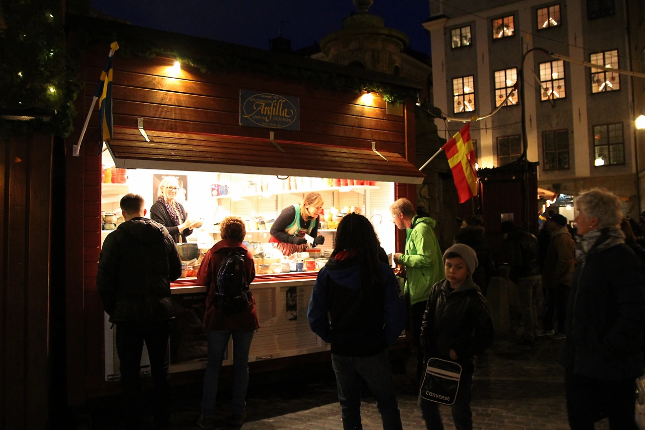 감라스탄의 크리스마스 마켓에는 스웨디쉬 빵, 절인 연어, 소시지와 햄, 캔디, 볶은 견과류, 글루바인을 파는 식료품 상점부터, 양털로 만든 트롤 장식품이나 크리스마스 장식을 파는 곳까지 다양했다. 한쪽에서는 화가가 감라스탄의 야경을 담기 위해 바쁘게 붓을 놀리고 있었다.