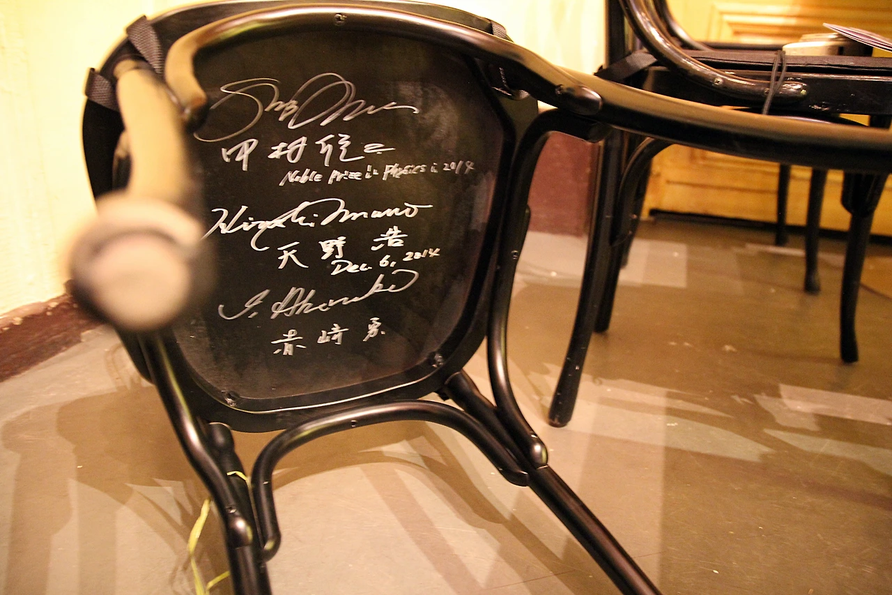 너 일본 노벨상 수상자들 서명이 새겨진 의자를 찾고 있니?