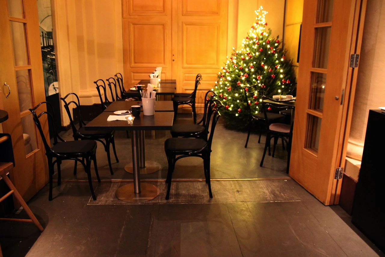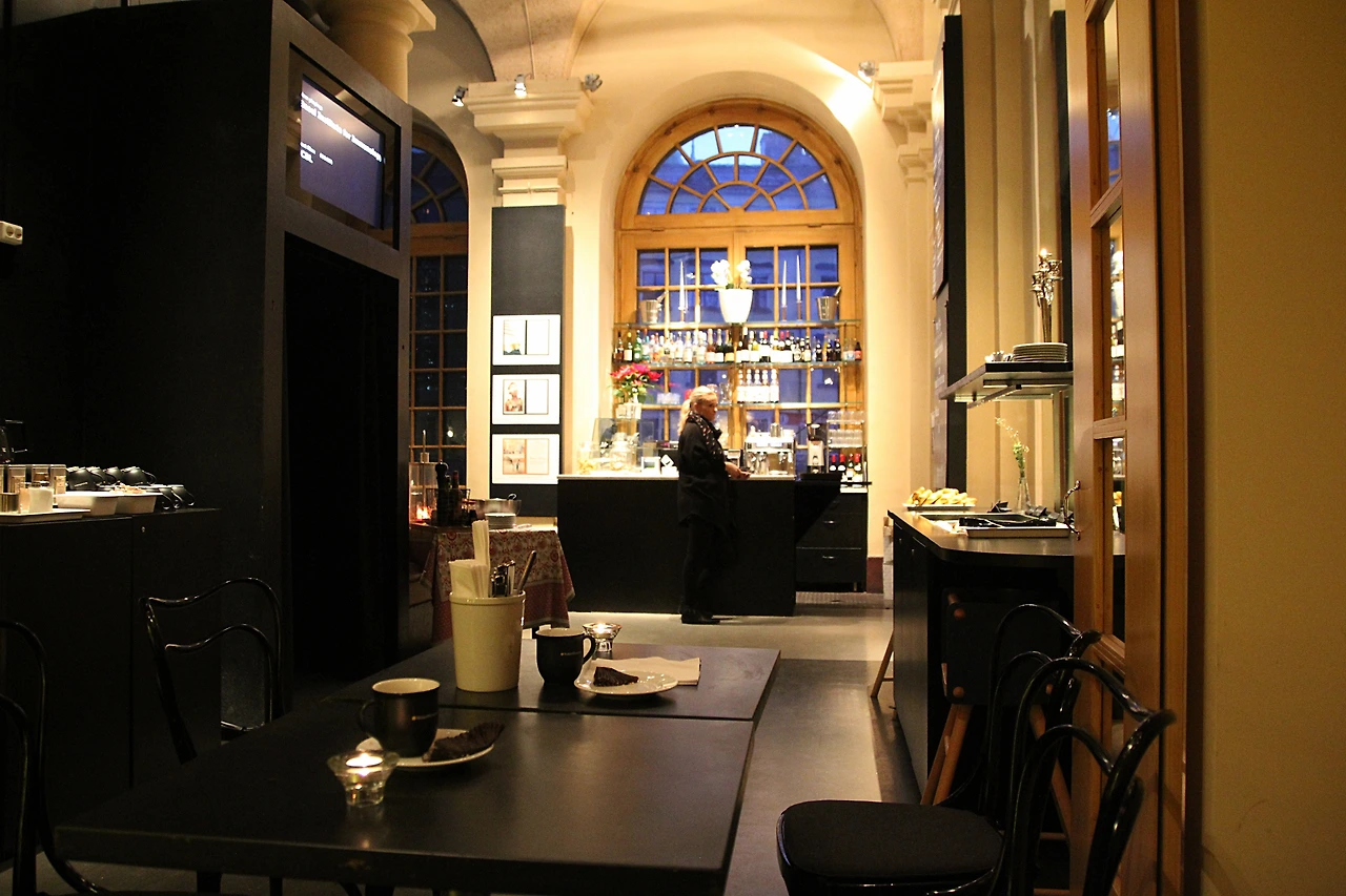 노벨 박물관 카페 테이블 아래에서 친구를 만들다.