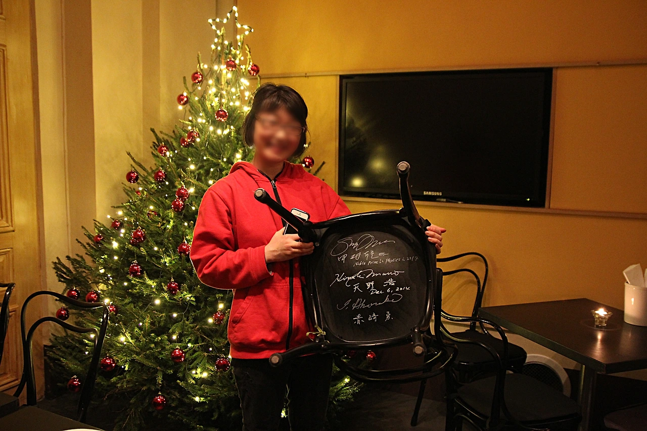 그 말을 들은 여성의 얼굴이 환해지더니 어디 있느냐고 물었다. 나는 "내가 지금 그 의자에 앉아있어."라고 대답하고 민망해서 웃음을 터트린 후에 얼른 의자를 확인시켜주었다. Miho라는 친구였는데 자신의 아이폰은 사진이 잘 안 나와서 사진을 대신 찍어서 보내줄 수 없겠느냐고 했다. 나는 당연히 해줄 수 있지라고 대답하고 사진을 찍어주었다. 잠시 여행 이야기를 나누다가 Miho는 다른 일행이 있다며 즐거웠다고 다음에 기회가 된다면 또 만날 수 있으면 좋겠다고 이야기했다. 나도 Miho와 헤어지고 나서, 노벨 박물관 앞의 크리스마스 마켓에 가기 위해 자리에서 일어났다.