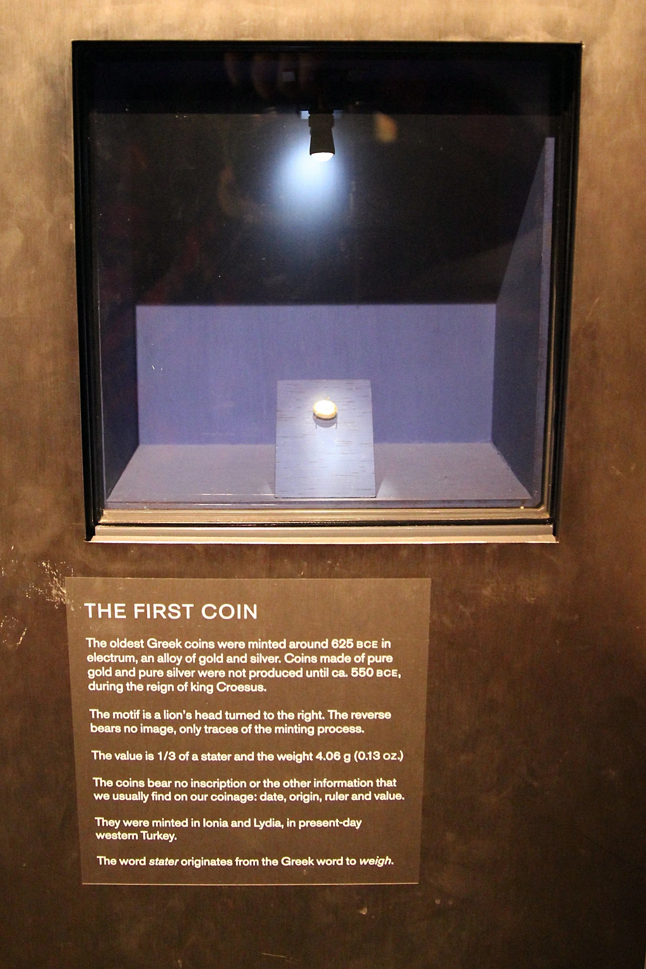 화폐 박물관은 정말 잘 꾸며져 있었다. 그중에서 내 시선을 사로잡은 것은 1층 초입에 있던 The First Coin으로 오히려 공예품이라고 하면 믿을 법한 새끼손톱만 한 금과 은으로 만들어진 동전이었다. 이걸 한동안 바라보다가 더 이상 뭘 보는 건 그만하고 좀 쉬고 싶다는 생각을 했다.