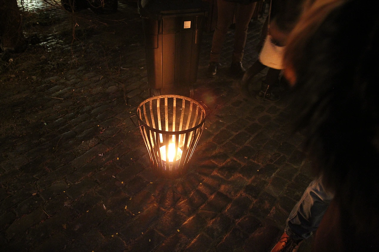 광장으로 나가자 어두운 붉은색 페인트로 칠해진 나무 부스들이 광장을 둥글게 둘러싸고 자리 잡고 있었다. 하늘이 어둑어둑해져서 낮에 미처 정리되지 못했던 부산함은 어둠 속에 감추어져 있었다. 광장 중앙의 커다란 크리스마스 트리 근처에서는 잘려 나온 전나무 가지들이 사람들에게 밟혀 공기 속에 싱그러운 향이 가득했다. 타닥타닥 타오르는 불 근처에는 크리스마스 마켓을 즐기면서 몸을 녹이는 사람들로 붐비고 있었다.