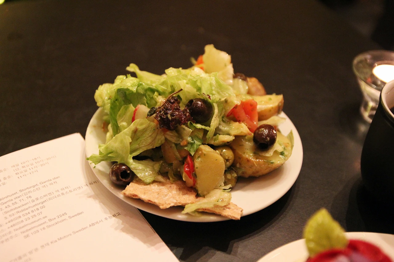 노벨 박물관 카페에서 먹은 간단한 음식들은 잊지 못할 것 같다. 비싼 북유럽 물가에 쉽사리 뭘 먹을 생각을 못하고 있었는데 샐러드가 한 접시에 15 크로나, 커피는 커피와 차가 무제한 리필에 25 크로나이라고 했다. 비록 아이스크림이 85 크로나였지만 감자와 올리브가 곁들여진 신선한 샐러드 한 접시가 2천 원이 안되고, 커피와 차 무제한 리필이 3천 원 정도여서 기분이 좋았다. 심지어 샐러드는 맛있기까지 해서 한 접시를 더 먹을까 고민할 정도였다. 노벨상 수상자들이 먹었다는 아이스크림도 라즈베리 소르베에 바닐라 아이스크림과 녹색 솜사탕이 곁들여진 달콤새콤한 맛이라서 기분이 좋았다. 이상한 점은 카페에 있는 사람들이 자꾸 의자 밑을 확인하고, 내 앞에 있던 중년 아줌마 둘은 자신들이 앉았던 의자를 들어서 인증 사진을 찍고 자리를 떠났다. 대체 의자 바닥에 뭐가 있는 거지 궁금해진 나는 내가 앉아있던 의자를 보았는데 내 의자에만 코팅된 종이가 리본으로 묶여 있었다. 나중에 온 카페 직원에게 물어보니, 모든 노벨 박물관 카페 의자 바닥에는 노벨 박물관을 방문한 노벨상 수상자들의 사인이 랜덤으로 적혀 있다고 한다.