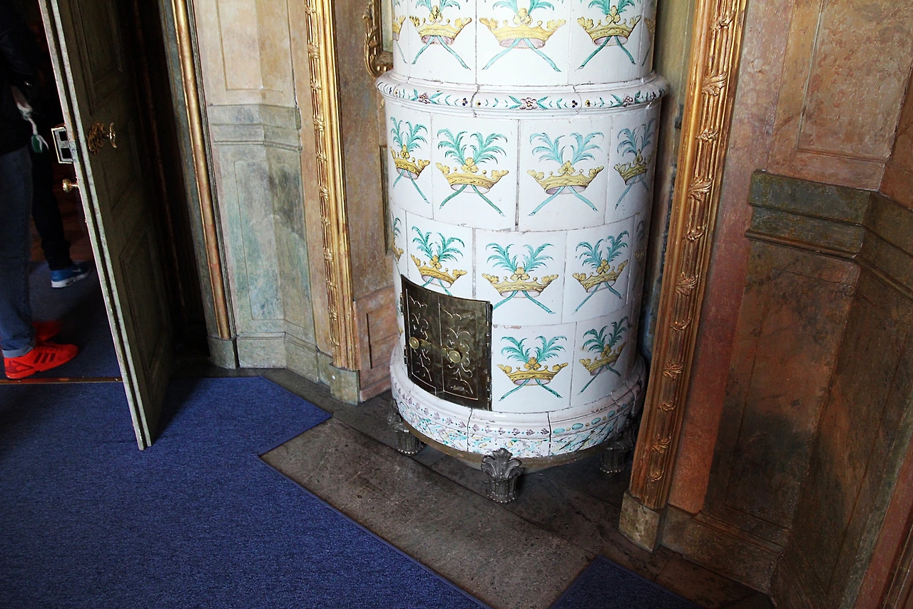 왕궁을 관람하다 보면 벽을 장식하는 도자기 접시들과 타일로 된 난로를 볼 수 있다. 유럽에서 16-17세기에 부를 표현하기 위한 수단으로 도자기를 수집하고 전시하였다고는 들었지만 실제로 이렇게 버젓하게 벽에 걸려있을 줄은 몰랐다. 스톡홀름 시청에도 도자기가 전시되어 있었는데, 왕궁에서는 벽에 장식처럼 걸어놓기까지 했으니 더욱 깜짝 놀랐다. 게다가 푸른 무늬의 아름다운 도자기 타일 난로를 벨벳으로 마감된 가구와 두툼하고 어두운 색의 카펫 사이에서 마주하니 눈에 띄게 이색적이었다.