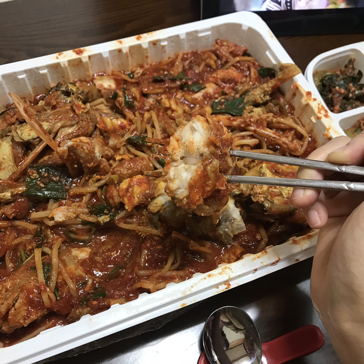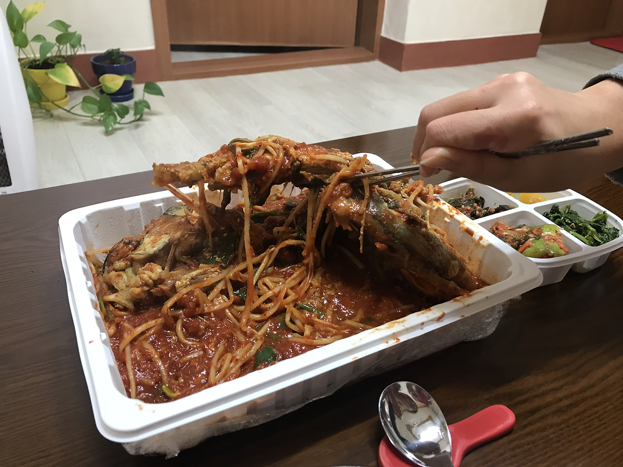 그렇게 먹고 뒹굴거리면서 친구에게 동방신기 나혼자산다 편을 보여주고 있었는데 마지막 해물찜에서 둘다 삘이 꽂혀서 화북에 있는 행복맛집에 전화를 했습니다.