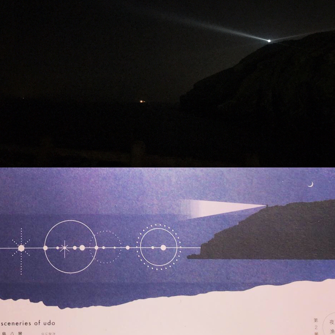 제2경 야항어범을 보기에는 태풍주의보로 바다 위에 배가 많지 않았다. 반면에 어둠 속에서 홀로 저 멀리 빛을 뿜어대는 등대가 반작이는 보석처럼 내 눈에 들어왔다. 우도 등대는 멀리 내가 서있는 어두운 도로 위에서도 잘 보일만큼 반짝반짝 빙글빙글 돌아가고 있었다.