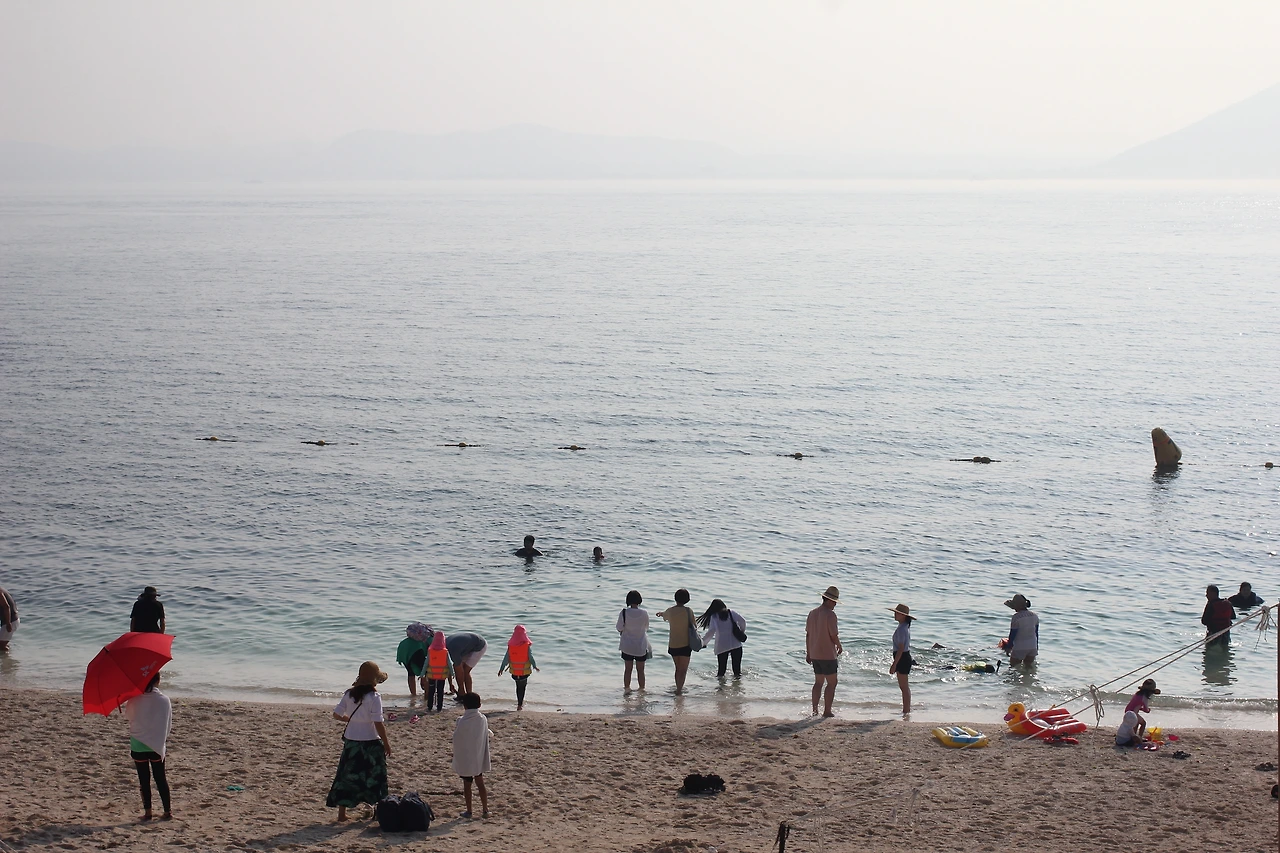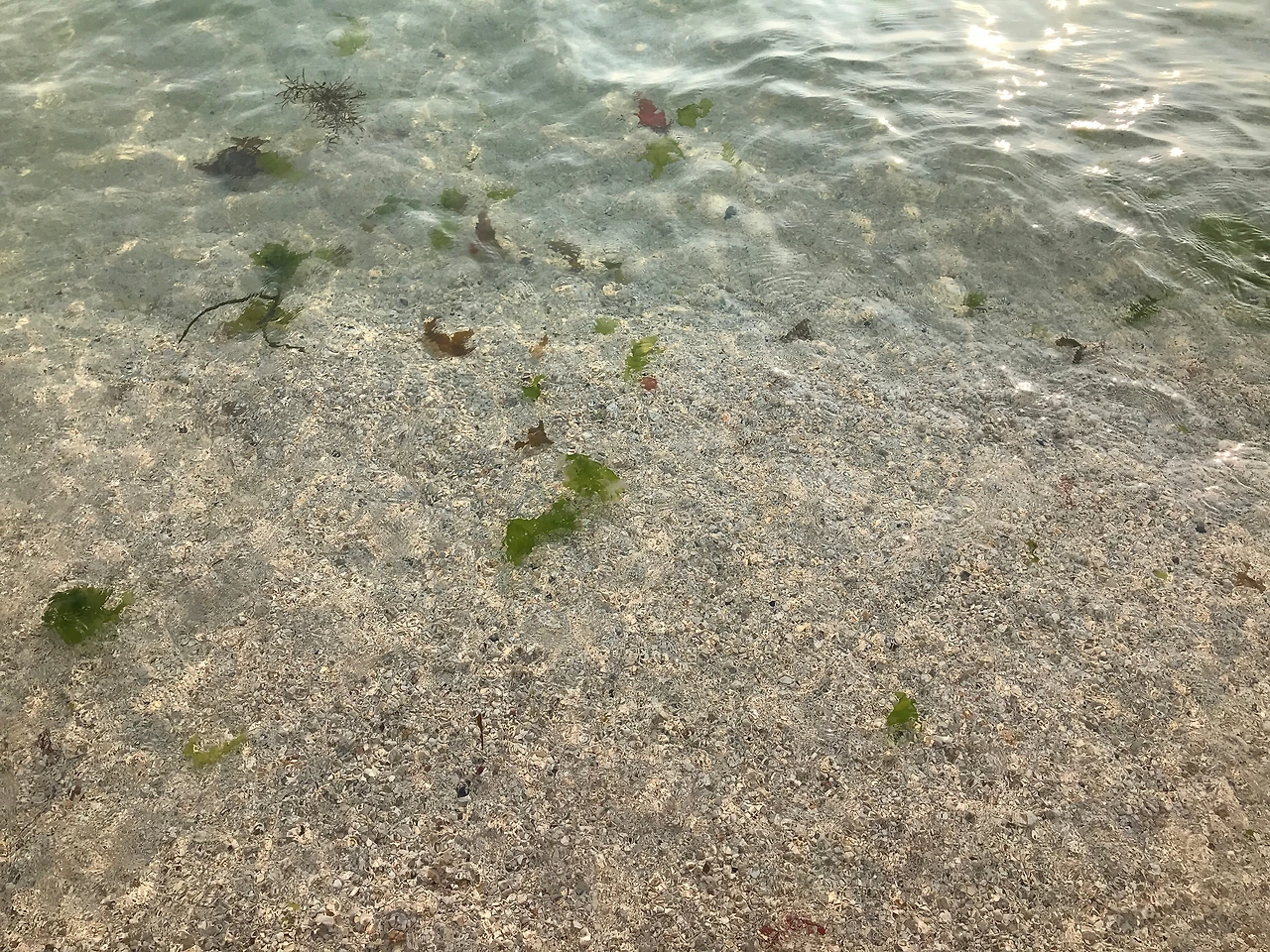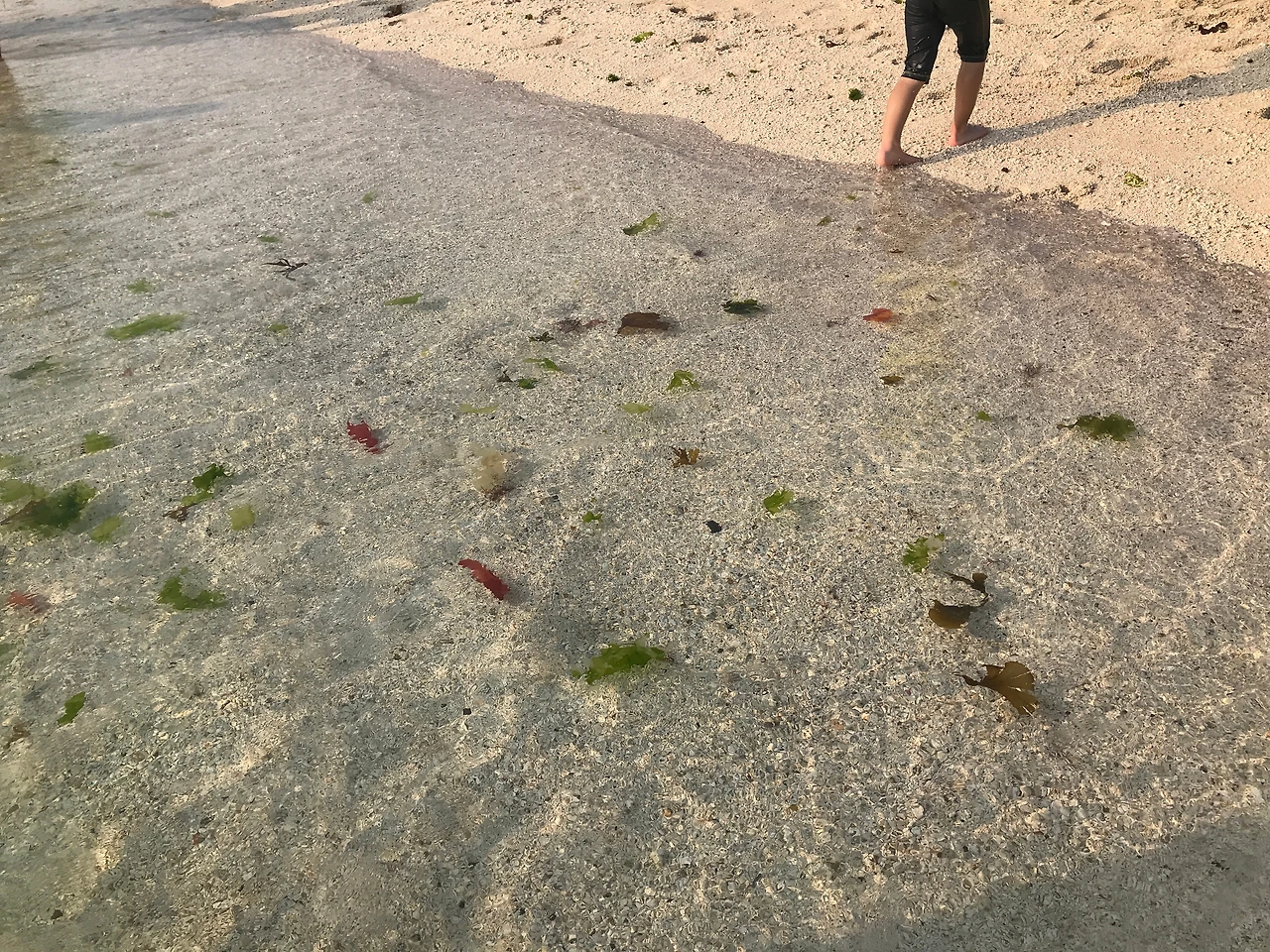 사진이 없어서 아쉽지만, 서빈백사 해수욕장에는 엄청나게 많은 물고기들이 있었다. 사람들 다리 주변을 맴돌며 팔뚝만 한 물고기가 돌아다니기도 하고, 바위의 해초 사이에는 징그럽게 느껴질 수도 있을 만큼 많은 물고기들이 떼 지어 헤엄치고 있다. 물이 맑아서 잘 보이기도 하지만, 이토록 많은 물고기들이 사람을 겁내 하지 않고 닥터피시처럼 사람들 주변을 맴돌고 있어서 튜브를 타다가 마스크를 꺼내서 둥둥 떠다니며 물속을 구경하는 사람들이 더 많았다. 물론 헤엄쳐 나올 때마다 발이 조금 아팠지만, 하얀 산호가 파도에 데구루루 구르는 모습을 보면 아픈 발도 참을 만했다. 파도에 산호가 구르는 모습이 무척 예쁘다. 그 어느 해변에서도 보지 못했던 모습이니 꼭 눈에 담아 갔으면 좋겠다.