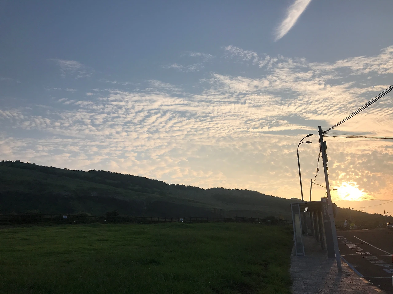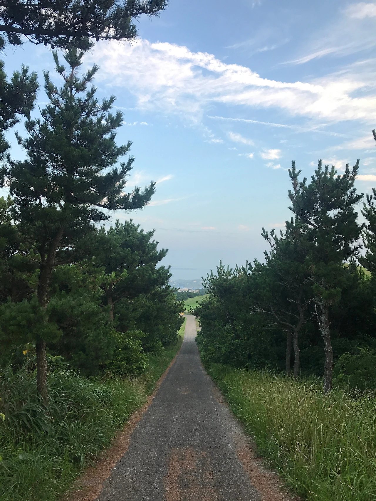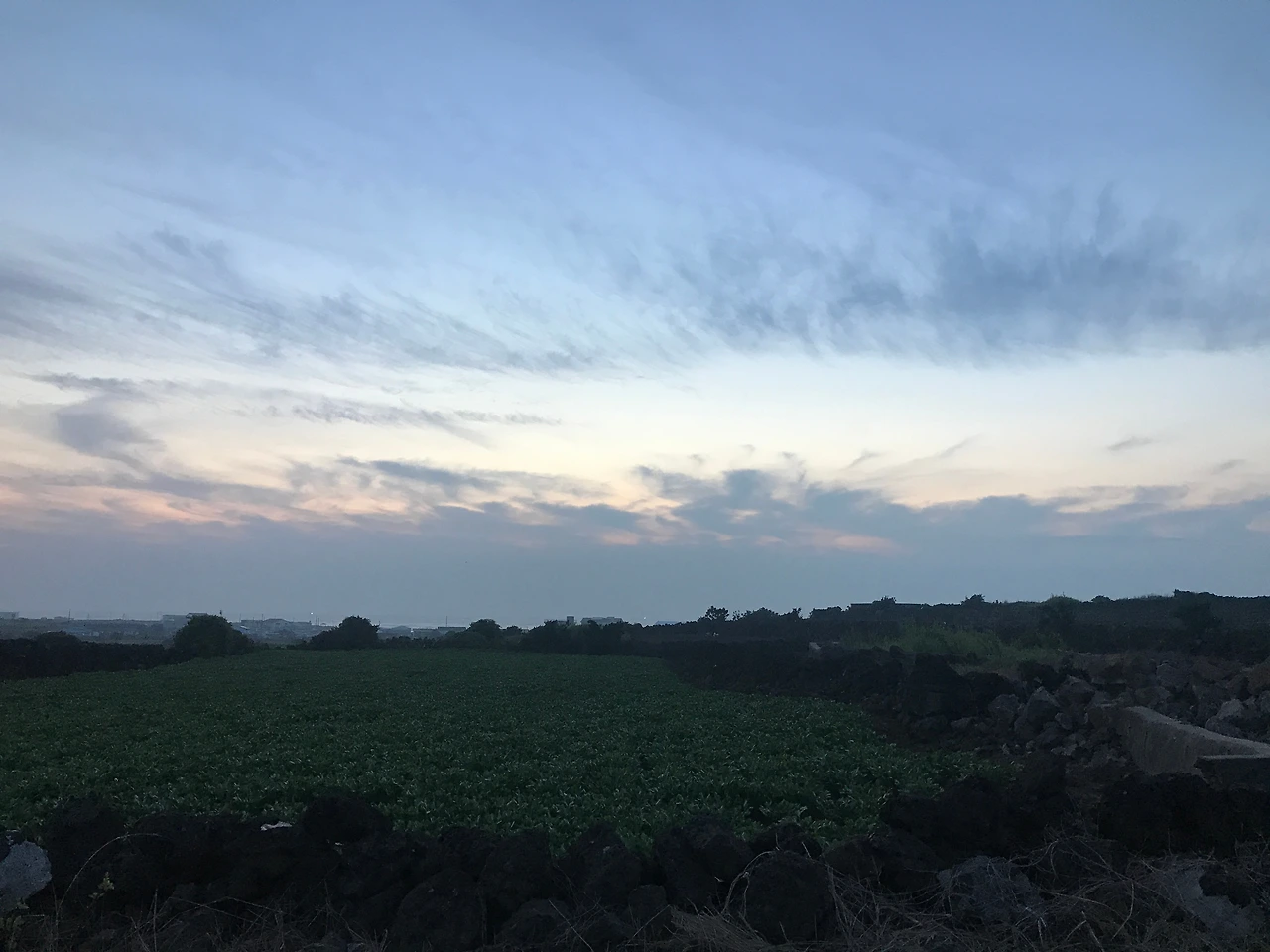 바보는 높을 곳을 좋아한다지. 조식 시간은 7시 반부터였고 나는 조그마한 도미토리 침실로 서둘러 돌아가고 싶진 않았다. 지금 시간이 6시이니까 가볍게 올라가고 나서 조식을 먹으러 가자고 생각했다. 우도봉 주차장에 주차를 하고 어딘가 음침해 보이는 숲길 입구를 지나오니 엄청난 하늘이 내 눈앞에 펼쳐졌다.