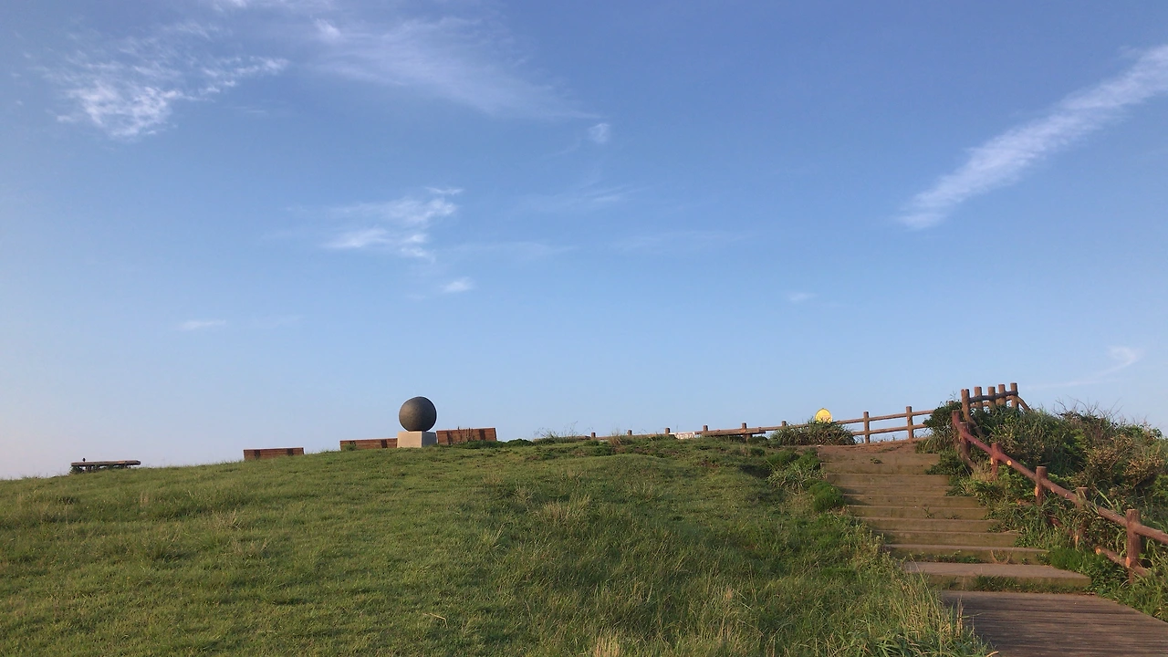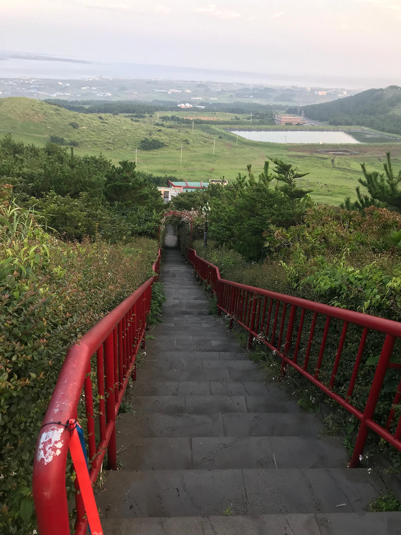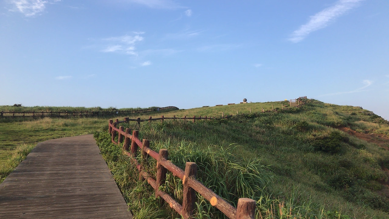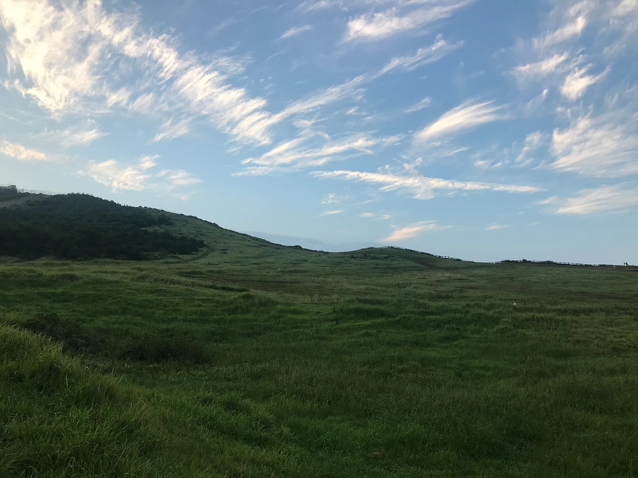 바보는 높을 곳을 좋아한다지. 조식 시간은 7시 반부터였고 나는 조그마한 도미토리 침실로 서둘러 돌아가고 싶진 않았다. 지금 시간이 6시이니까 가볍게 올라가고 나서 조식을 먹으러 가자고 생각했다. 우도봉 주차장에 주차를 하고 어딘가 음침해 보이는 숲길 입구를 지나오니 엄청난 하늘이 내 눈앞에 펼쳐졌다.