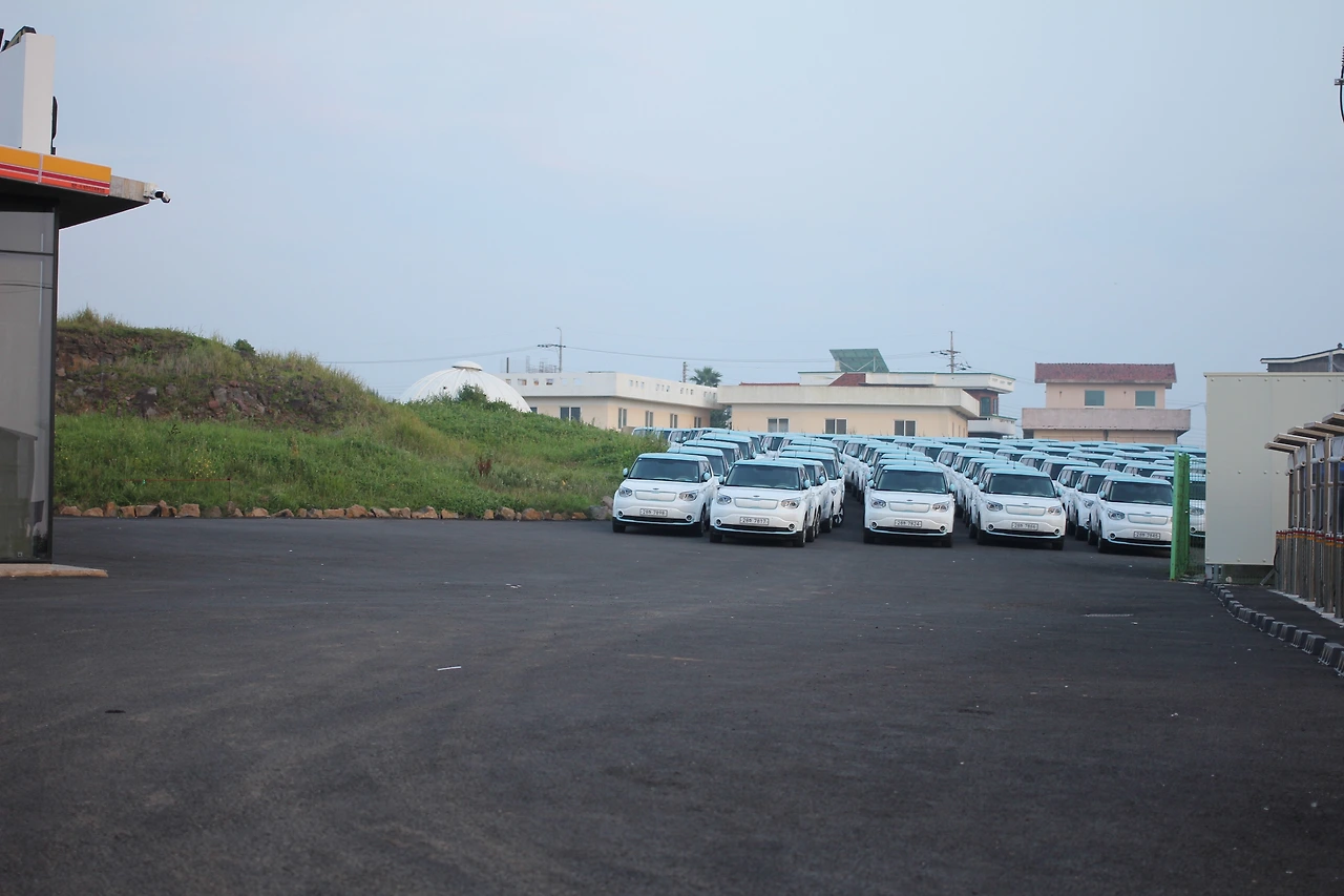 텅 빈 우도의 텅 빈 도로를 달린다. 이따금 퇴근하는 동네 주민의 시선을 받는다. 우도 전기차 대여소에 복제인간처럼 세워져 있는 차들을 보고 흠칫 놀랐다 차를 잠시 세우고 사진을 찍는다.