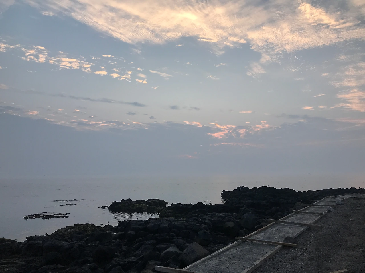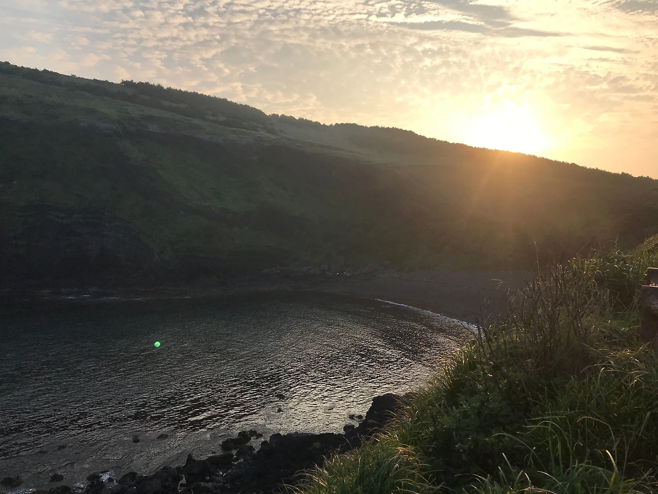 익숙하지 않은 도미토리에서 잠을 설쳐서 결국 일출을 보러 나왔다. 조금 게을렀으므로 이미 해가 조금 뜬 상태.