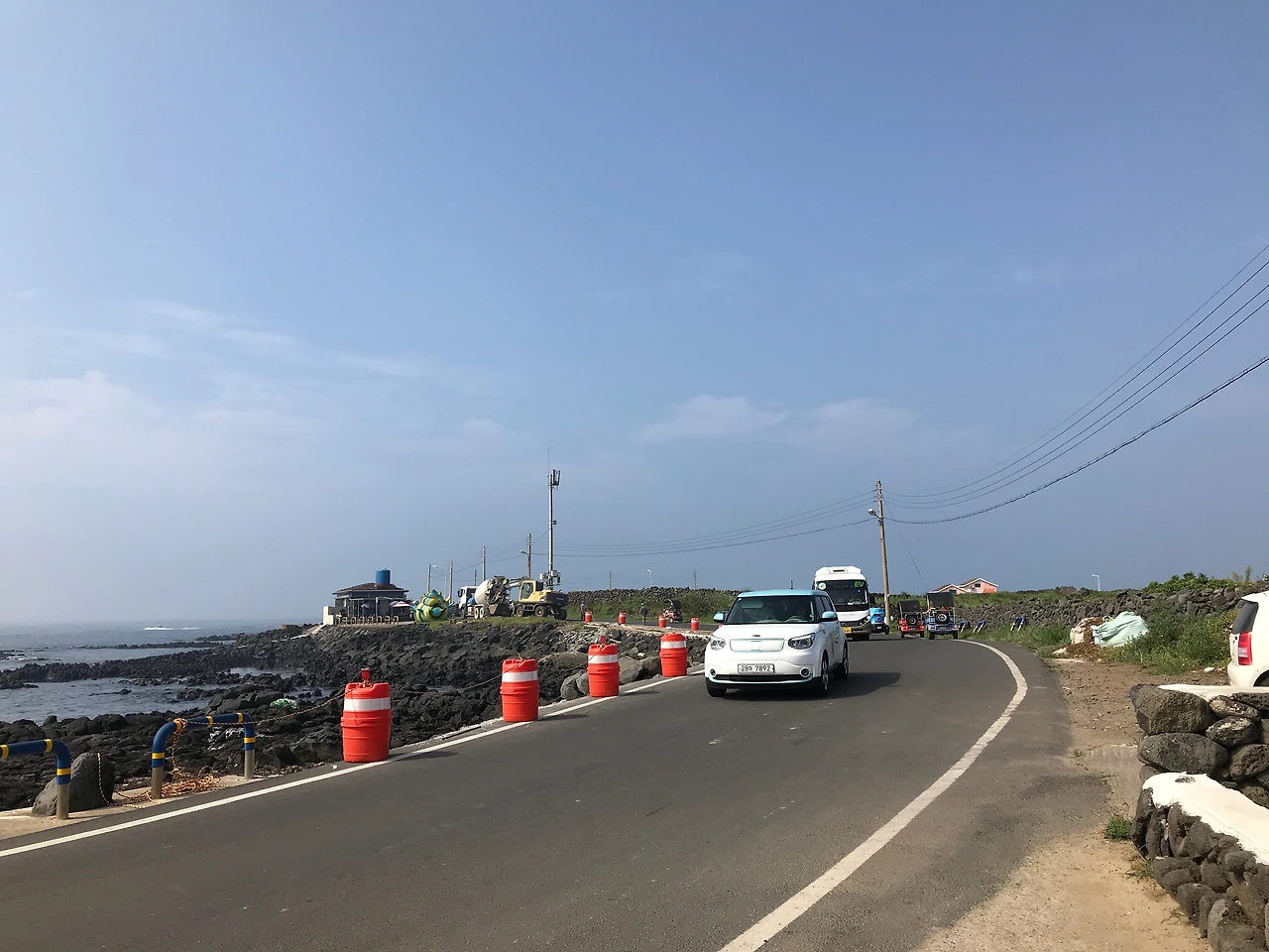 잡아놓은 숙소의 체크인이 3시였는데 너무 들떠서 2시 배를 탔기에 할 일을 고민하다 우도를 한 바퀴 돌기로 했다. 예전에는 하고수동에서 한 바퀴 돌기를 포기하고 해수욕을 했었기 때문에 숙소 가기 전 우도를 한 바퀴 돌아보고 마음에 드는 곳을 집중 공략하기로 했다. 그런데 많은 분들이 대여해서 즐기고 있는 전기 스쿠터들이 도로에 많아서 시원스럽게 달리기가 어려웠고, 혹시나 사고가 날까 신경을 곤두세워 운전해야 했기 때문에 오른쪽 허벅지에서 쥐가 날 것 같았다. 좁고 갑자기 꺾어지는 구간도 많고 공사 중인 곳들도 종종 있어서 나처럼 안전 지상 주의자인 사람에게 한창 관광객이 많은 시간에 우도에서 운전하는 것은 힘든 일이었다.