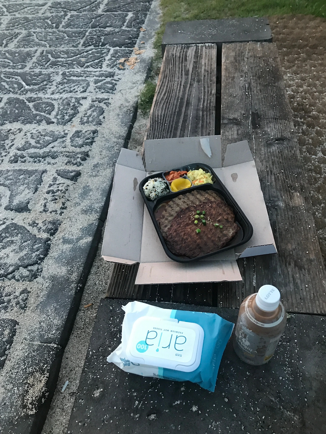 저녁은 백종원 도시락으로 때웠다. 혼자 온 여행에서 비싸게 돈을 주고 밥을 먹을 배짱도 없고 여행 경비를 10만 원으로 잡아두었으니 내일 뱃삯을 생각해서 아끼기로 했다. (첫 한입 베어 무는 순간, 내가 오늘 햄버거로 점심을 먹었었지! 이왕이면 햄버거와 비슷하지 않은 메뉴가 좋았을 텐데 하는 후회와 모기에게 헌혈한 내 다리만 빼면 아주 좋았다.)