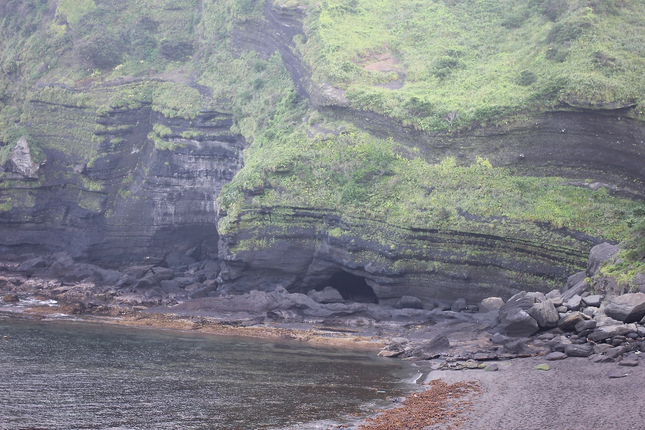 아무도 없는 도로를 따라 우두봉의 옆얼굴을 보러 검멜레 해수욕장으로 갔다. 쨍한 햇살 아래서 보였던 웅장한 위엄은 덜했지만 층층이 드러난 표층이 압도적으로 아름다웠다.