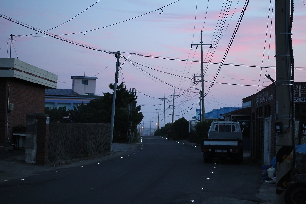 숙소로 돌아가는 길에 놀라운 사실을 알았다. 민가가 모여있는 곳에 있는 우도의 도로에는 LED 라이트가 도로 양쪽에 설치되어 있어서 담이 없는 집과 도로의 경계를 명확하게 구분 짖고 있었다. 내 상상에는 시골이니 어둡고 침침하고 가로등 불빛에만 의지해야 할 것 같았는데, 밭 사이 어두운 도로가 아니면 오히려 치안은 우도가 더 좋아 보였다.