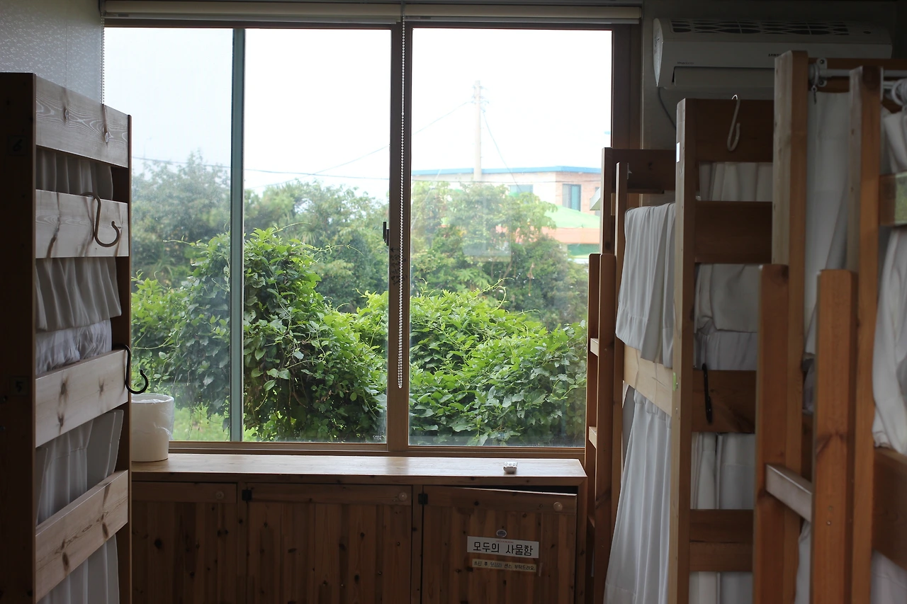 3시가 되자마자 나는 숙소에 도착했다. 우도는 섬이라서 그럴까(제주도에 사는 내가 이런 말을 하니 우습긴 하다.) 해무가 자욱하기도 했고 배를 타고 오면서 땀과 습한 공기가 몸에 달라붙어 끈적거렸다. 시원하게 씻고 다시 나가고 싶었다. 내가 예약한 방은 소섬바당 해녀실. 총 8개의 침대가 있었고 4명의 인원이 숙박을 했다. 방은 에어컨이 시원하게 틀어져 있었다.